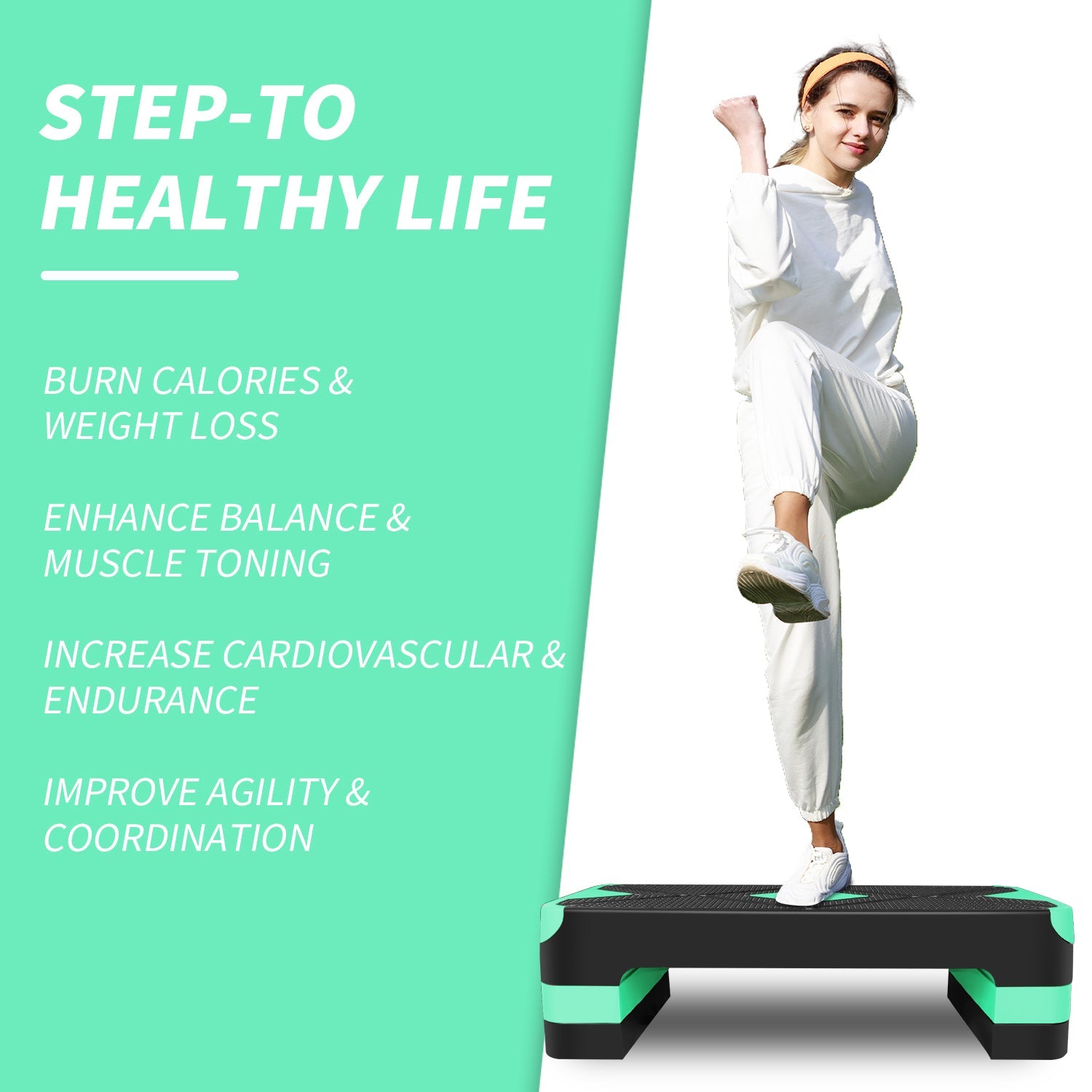 【DURABLE & TOP QUALITY MATERIAL】This step up exercise platform is constructed with durable high-density ABS material, features of shock-absorbent and assure your safety of exercises. This stepper platform is built for long-term use and strong enough to support up to 550 lbs.