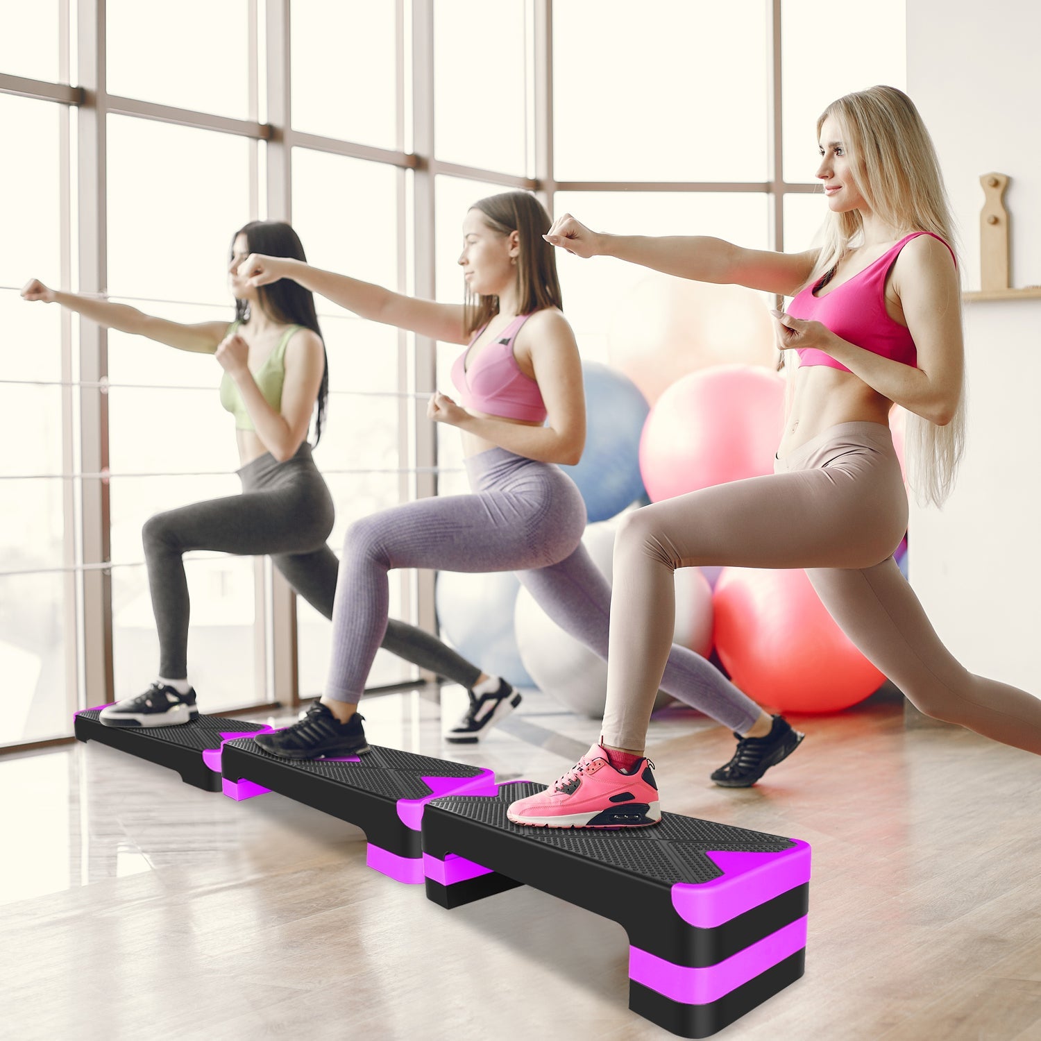 Aerobic Exercise Step Adjustable Platform, 68.5cm/27" Deck, 3 Height Risers, Purple