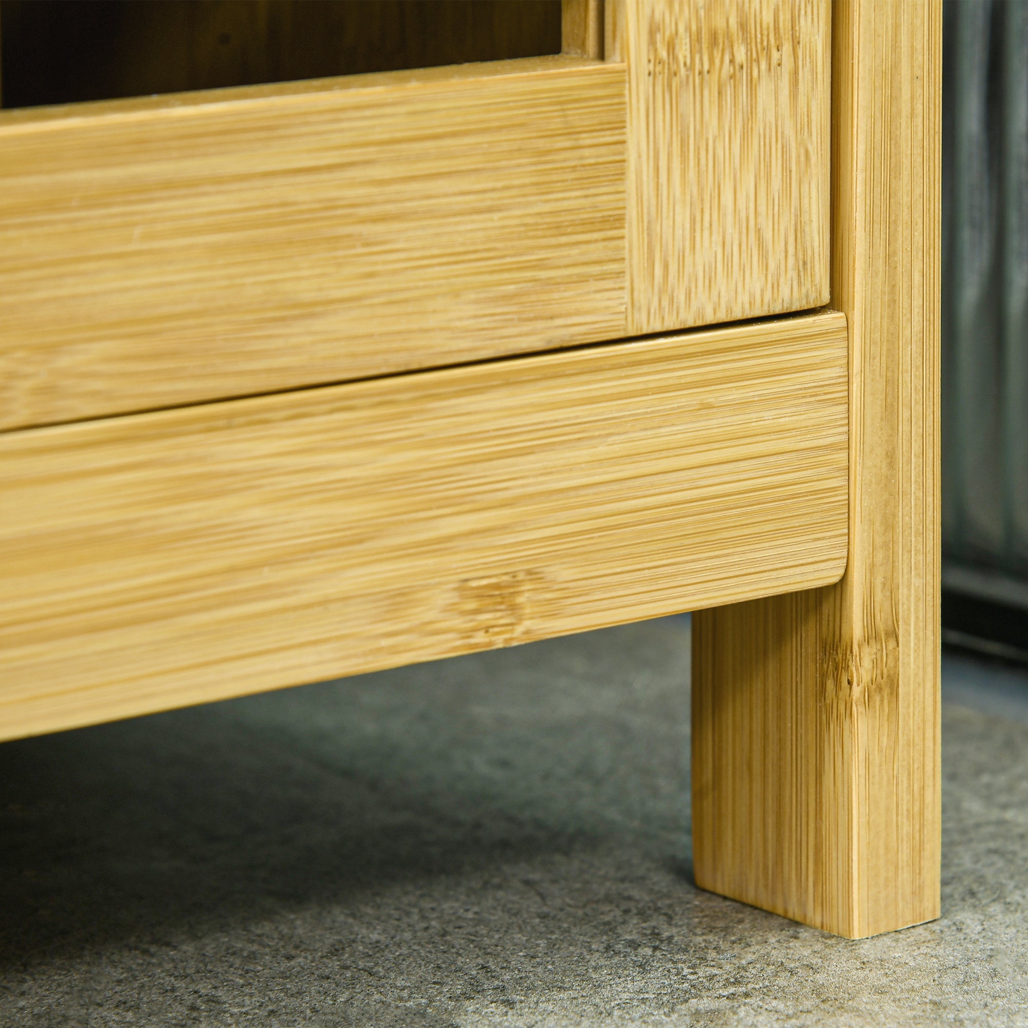 Bathroom Cabinet with Cupboard, 3 Shelves, Anti-Tip - Natural Bamboo