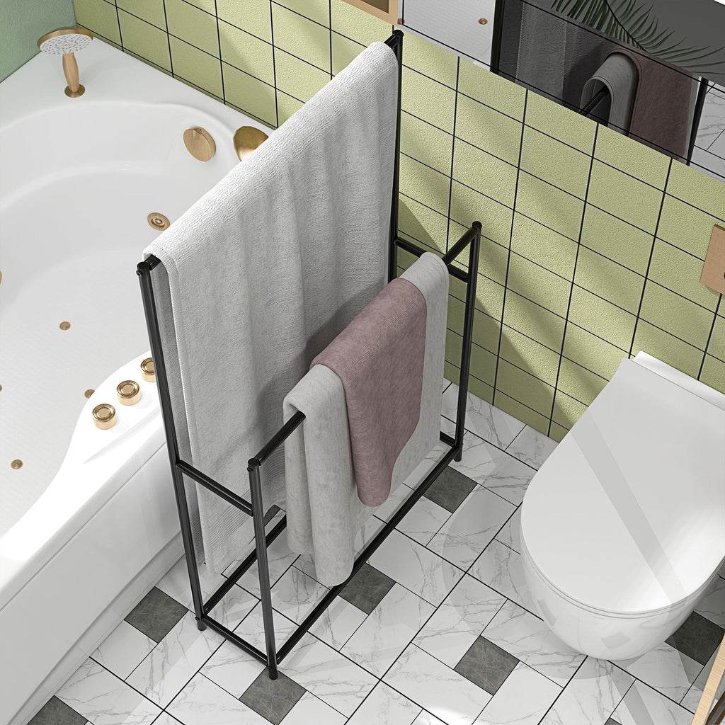 Towel Rail, Freestanding with 2 Rails, Metal, Black