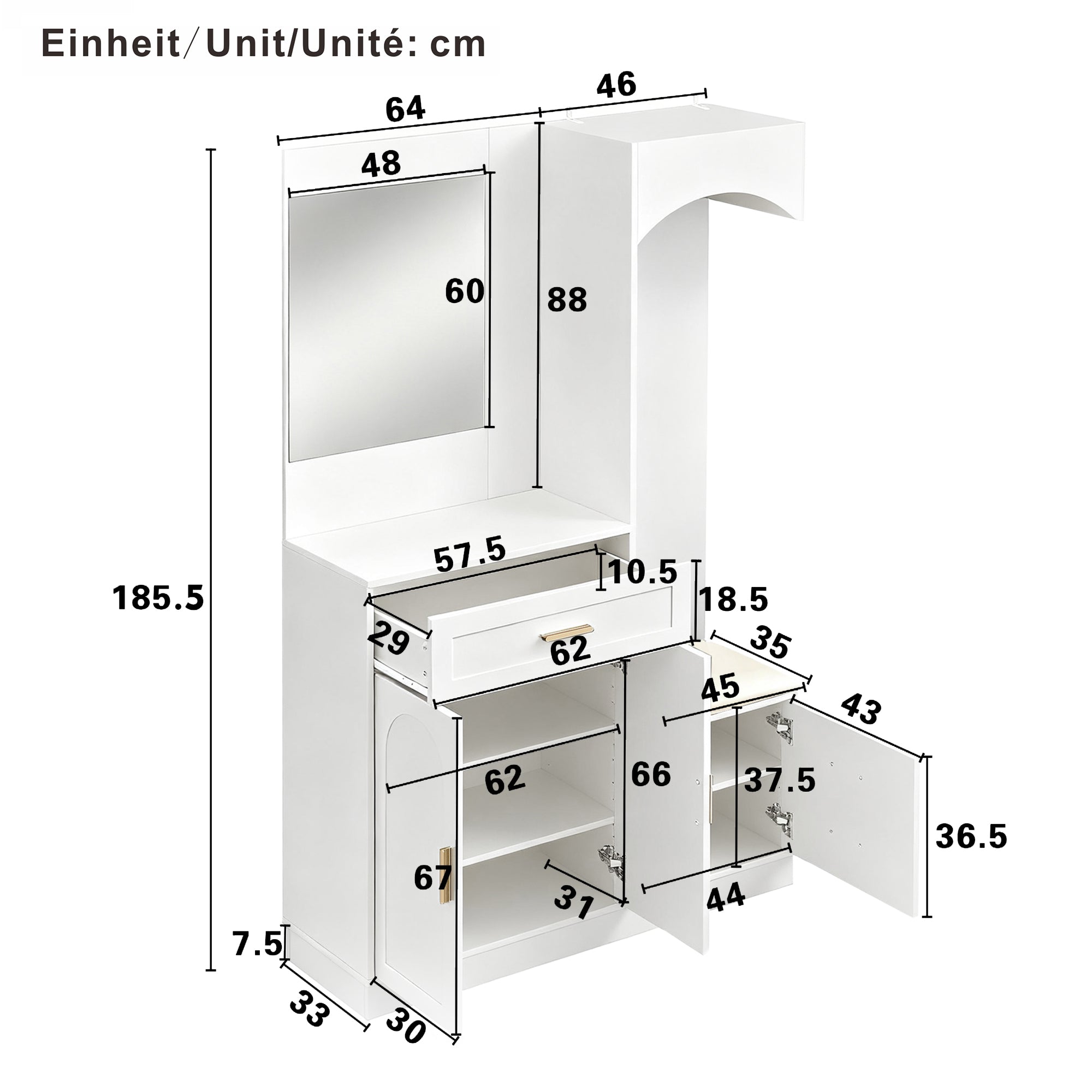 3. Equipped with drawers and multi-level adjustable shoe racks, it offers convenient storage space.