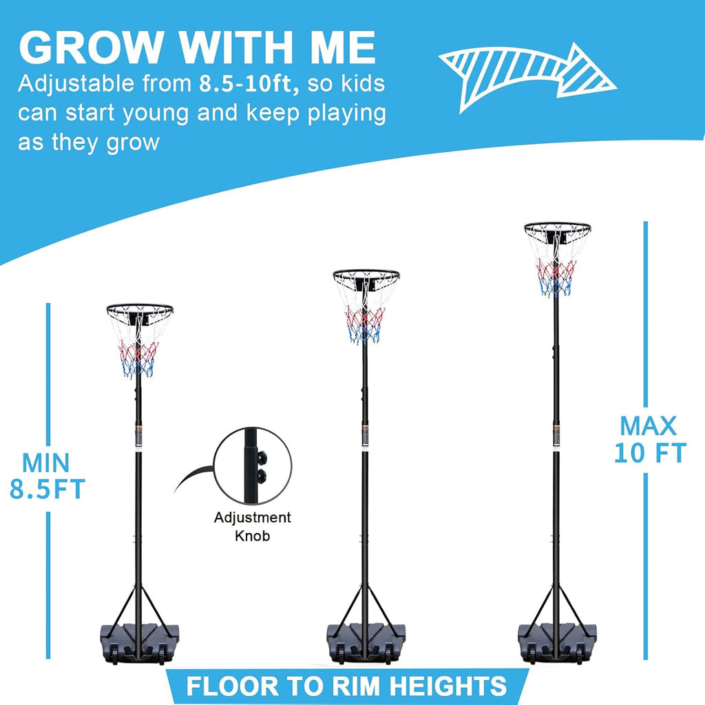 Basketball Hoop, Adjustable Height, Portable & Mobile, 8.5-10FT Range, Indoor/Outdoor Use
