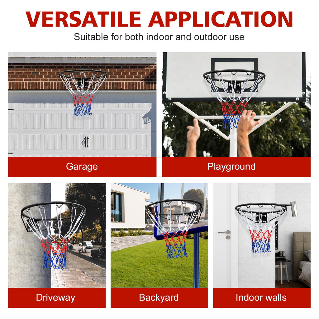 This heavy-duty breakaway basketball rim is highly suitable for beginners' training and basketball enthusiasts' games, whether in driveways, backyards, or indoors. You can install it on any stable vertical surface where you want to play basketball, including walls, doors, or other suitable locations.