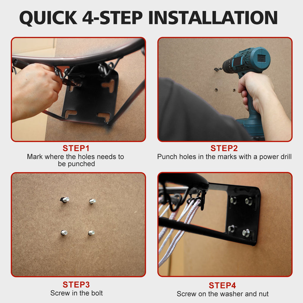 This wall-mounted basketball hoop is easy to install and does not require professional installers. Simply follow these four steps: First, mark the positions of the four installation holes. Second, drill holes using nails or a drill. Third, screw in the expansion bolts. Fourth, install the basketball hoop. Assembly takes just a few minutes.