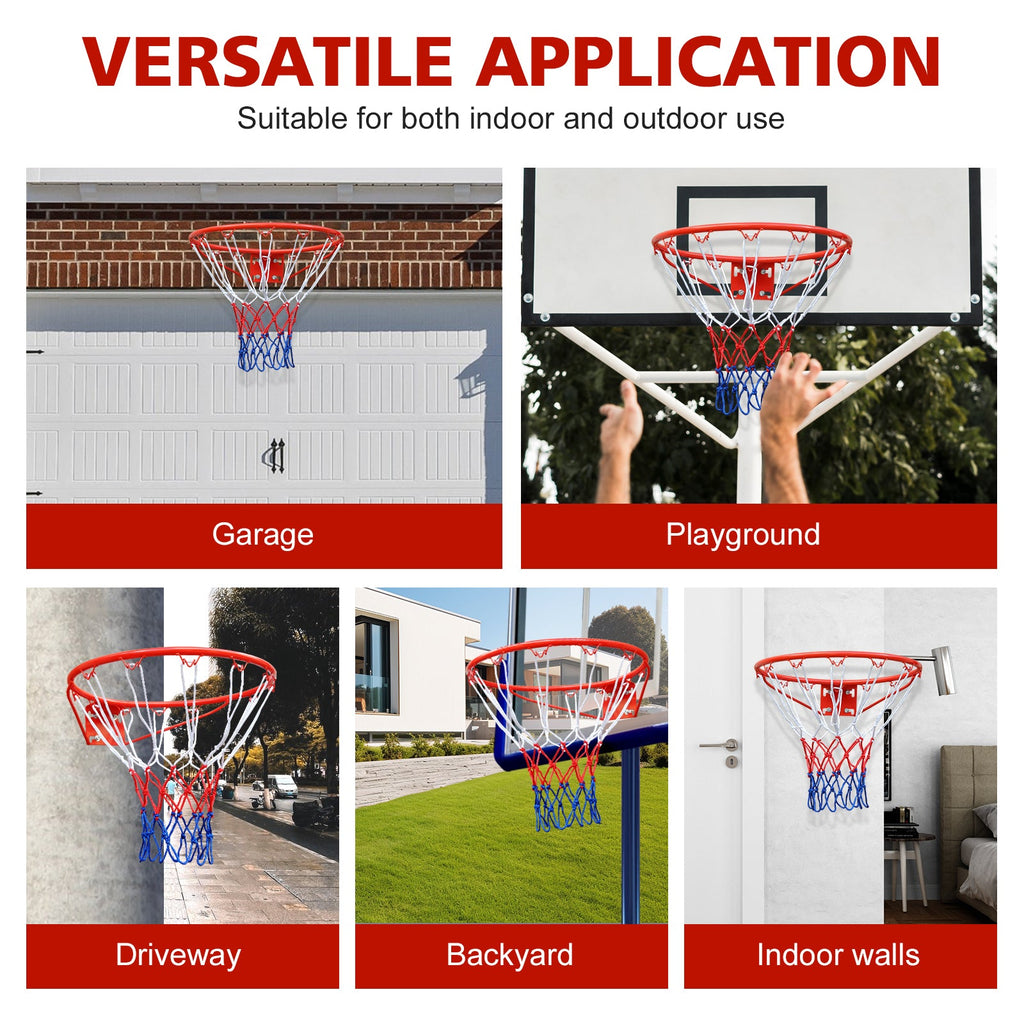 Basketball Rim Replacement, Heavy Duty, Wall/Door Mounted, In-Ground & Wall-Mounted, Red