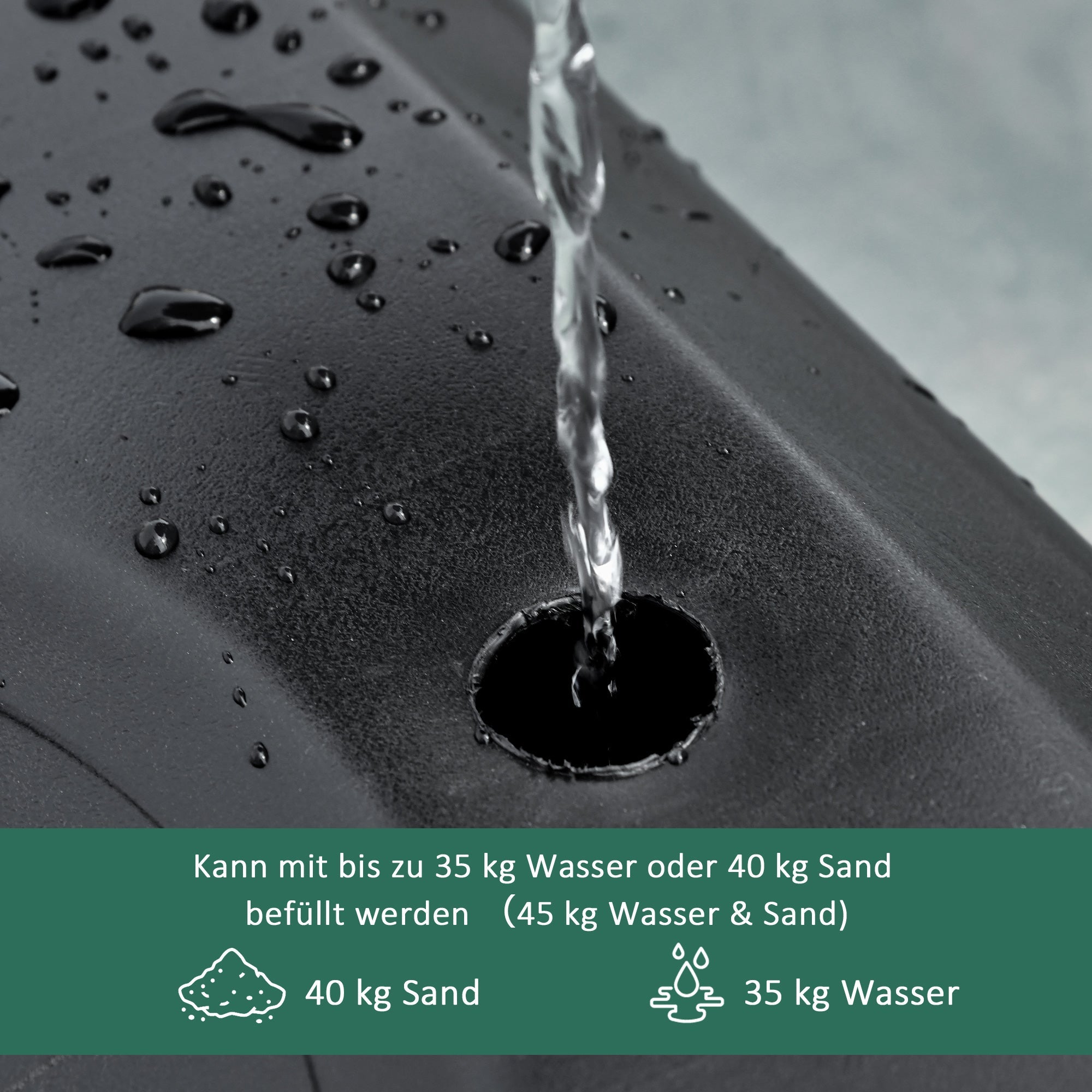 Sturdy base: The HDPE base can be filled with 35 kg of water, 40 kg of water, or a maximum of 45 kg of water and sand to ensure stability. A round recess on the lower base provides space for your basketball when not in use.