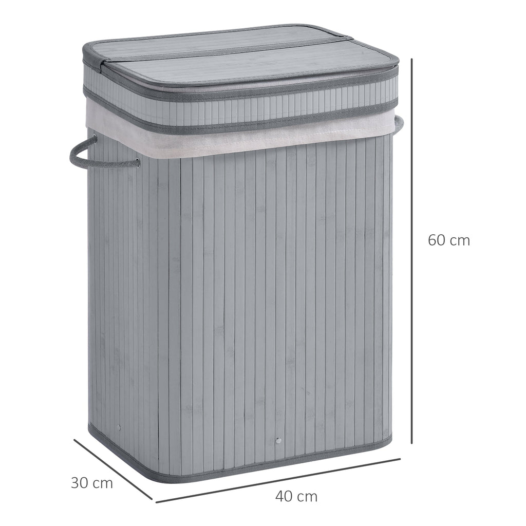 Bamboo Laundry Basket, 70L, Narrow with Lid, Gray