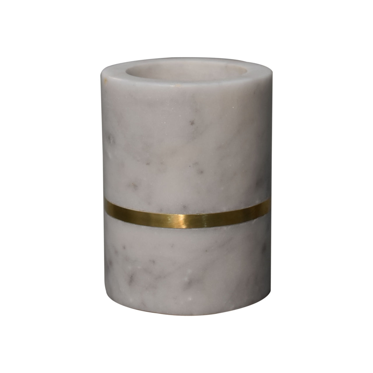 Bathroom Accessories Set of 5 Brass Inlay White Marble