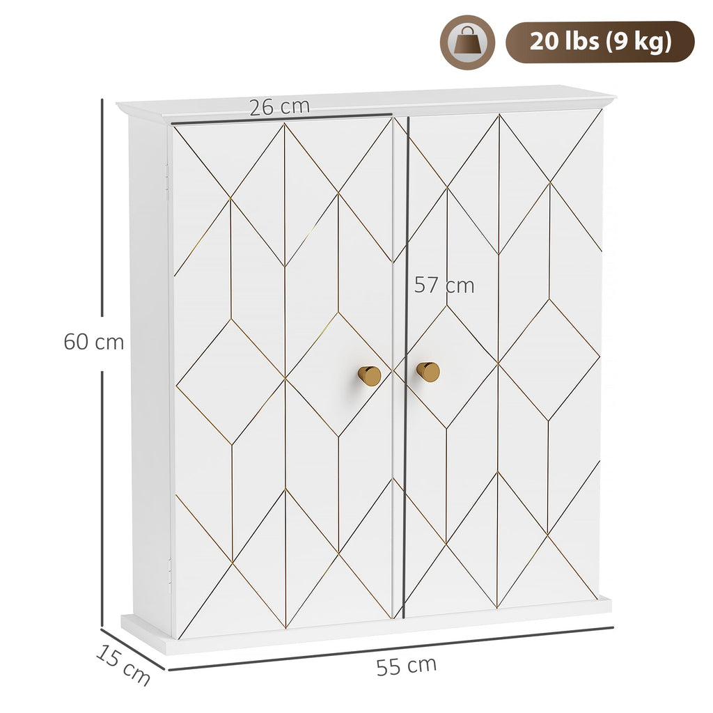 Modern Design: This wall storage cabinet is finished in pure white and accented with gold-tone geometric elements applied to the door. Its classic rectangular appearance with a golden geometric line will provide a fresh visual impact on your house.
