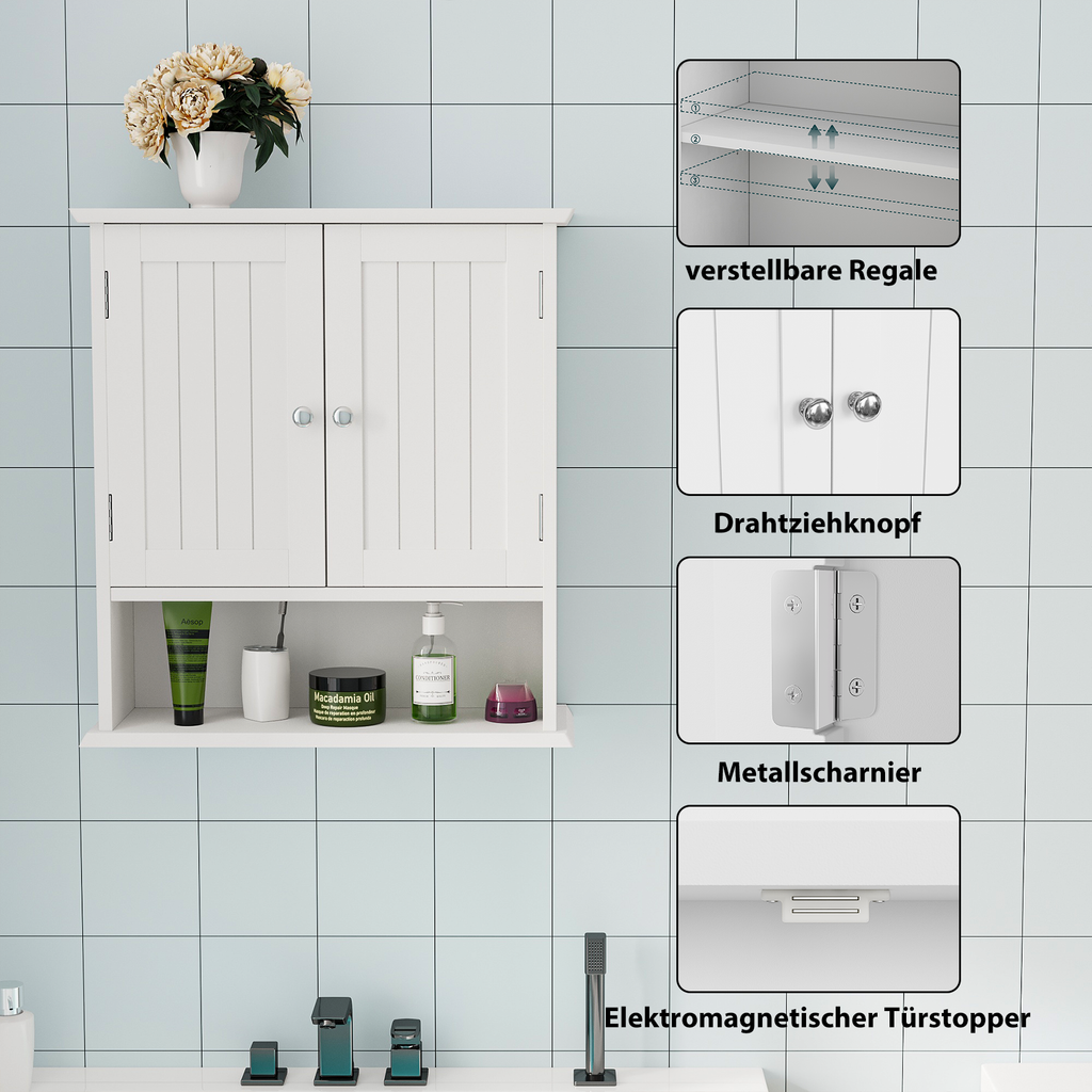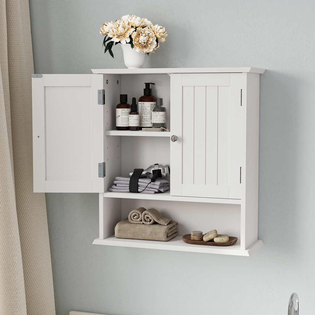 Bathroom Cabinet, Wall Mounted with Double Doors & Adjustable Shelves, White