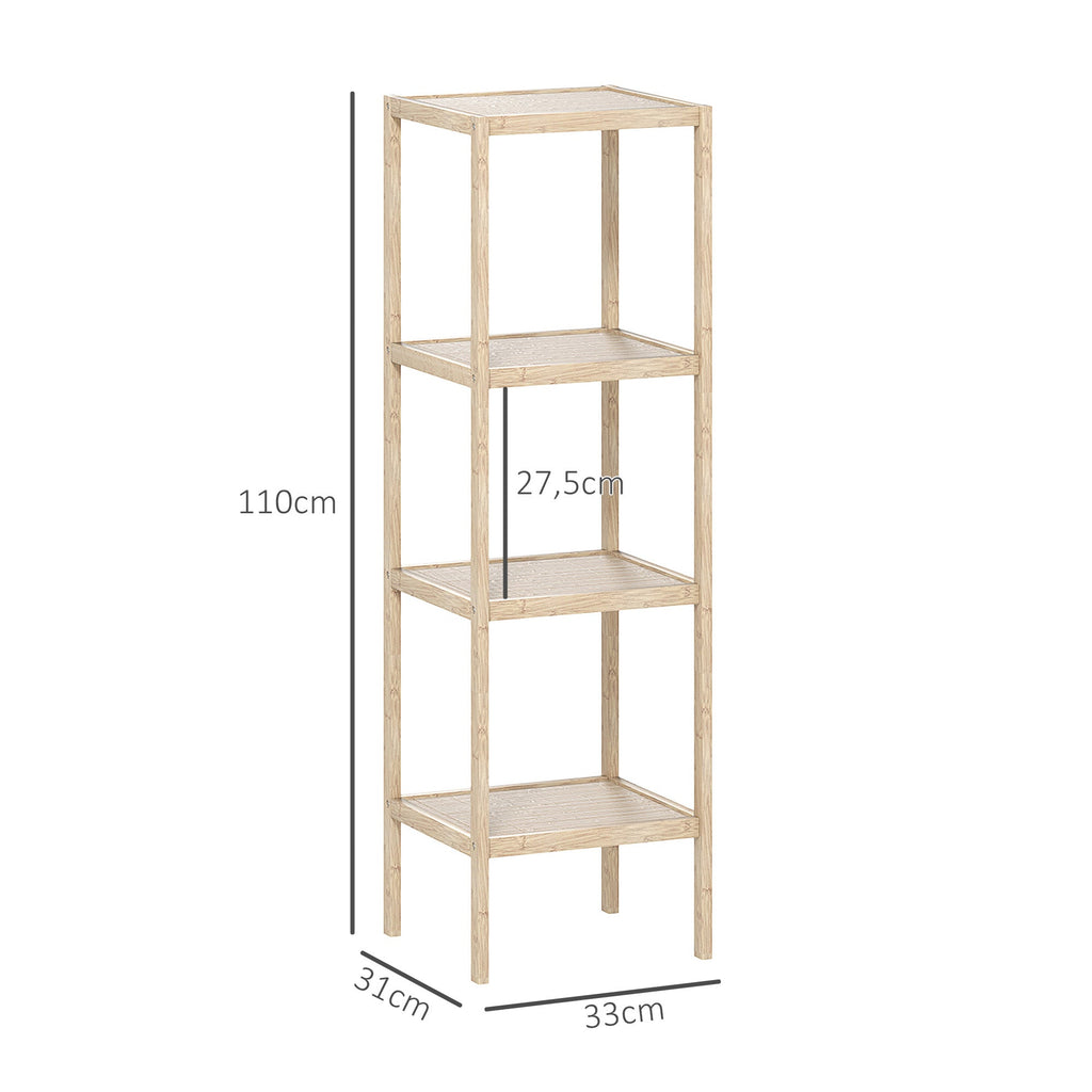 Four-Tier Shelf Bathroom Storage Unit Bamboo Natural Finish