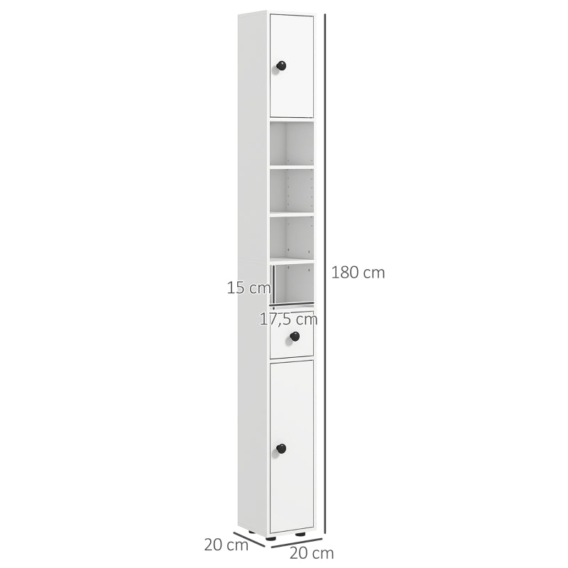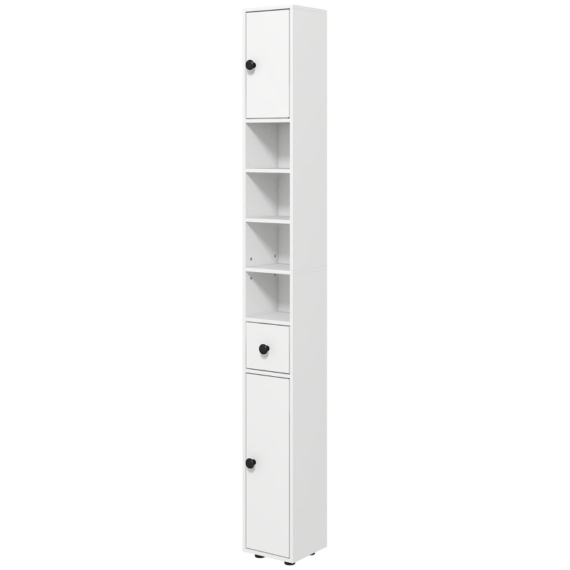 kleankin Slim Bathroom Cabinet, Tall Toilet Cabinet with Drawer & 4 Open Compartments, White