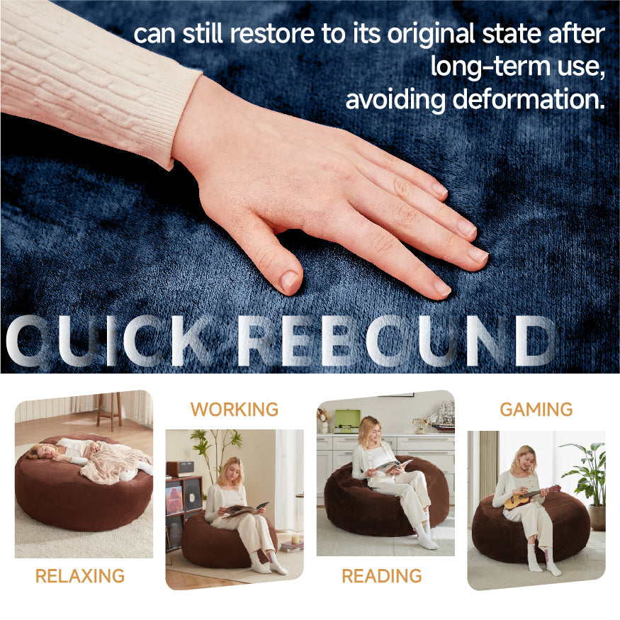 This 4FT bean bag sofa offers pressure-relieving support and customizable shapes, functioning as both a lounge chair and a temporary guest bed.