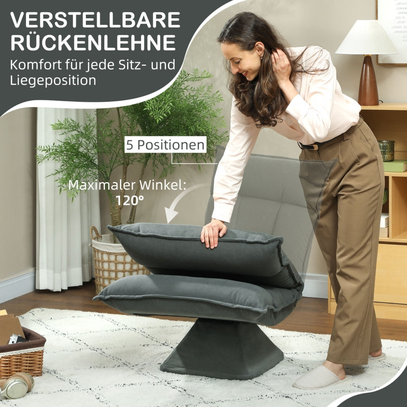 Floor Chair 360° Rotatable, 5-Way Adjustable Backrest, Foldable, Dark Gray