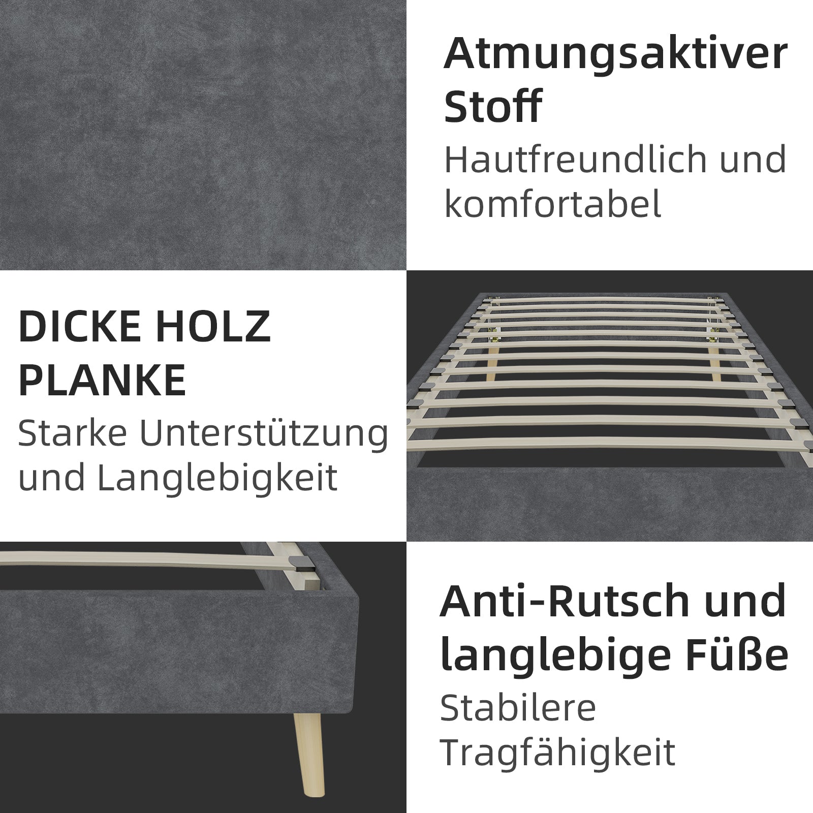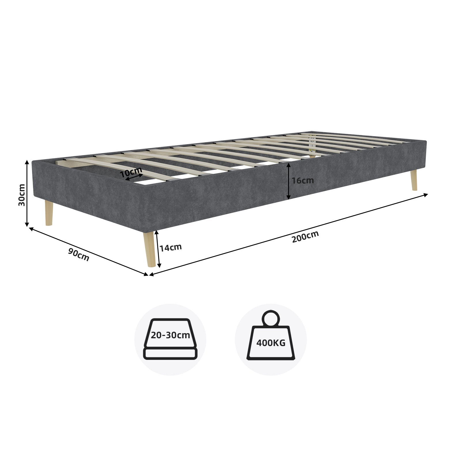 Bed Frame Modern Minimalist 90x200cm Low-Profile Dutch Velvet Grey