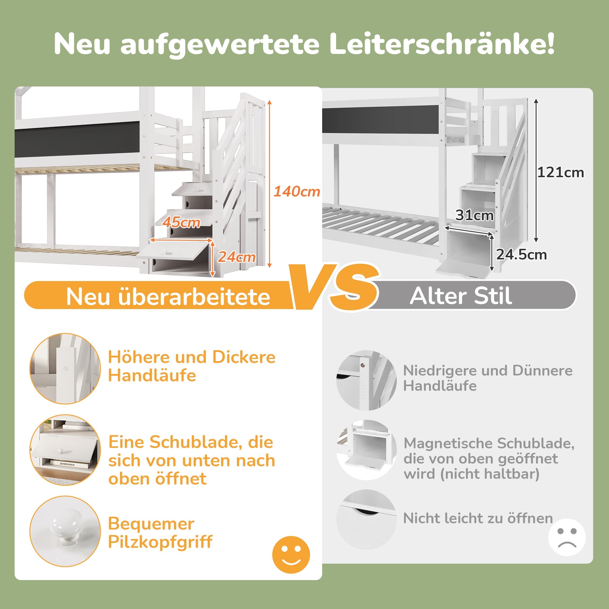 Children's Treehouse Bunk Bed 90x200cm, Storage, Fall Protection, White