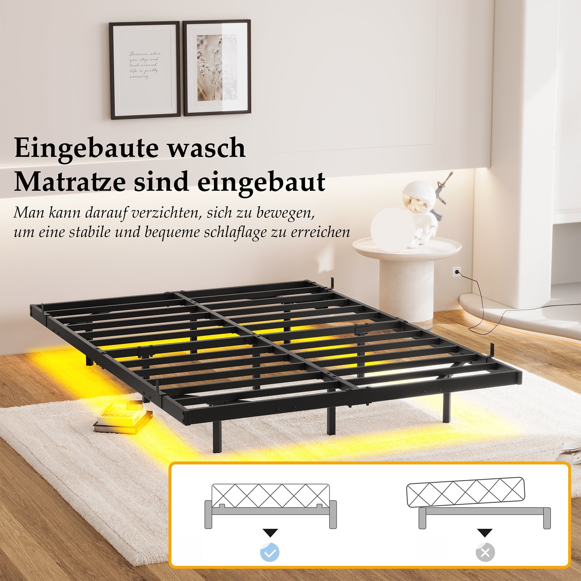 Thanks to the labeled parts, illustrated instructions, included hardware, and tools, you can quickly complete the assembly according to the instructions and immediately enjoy the comfort of the floating bed.