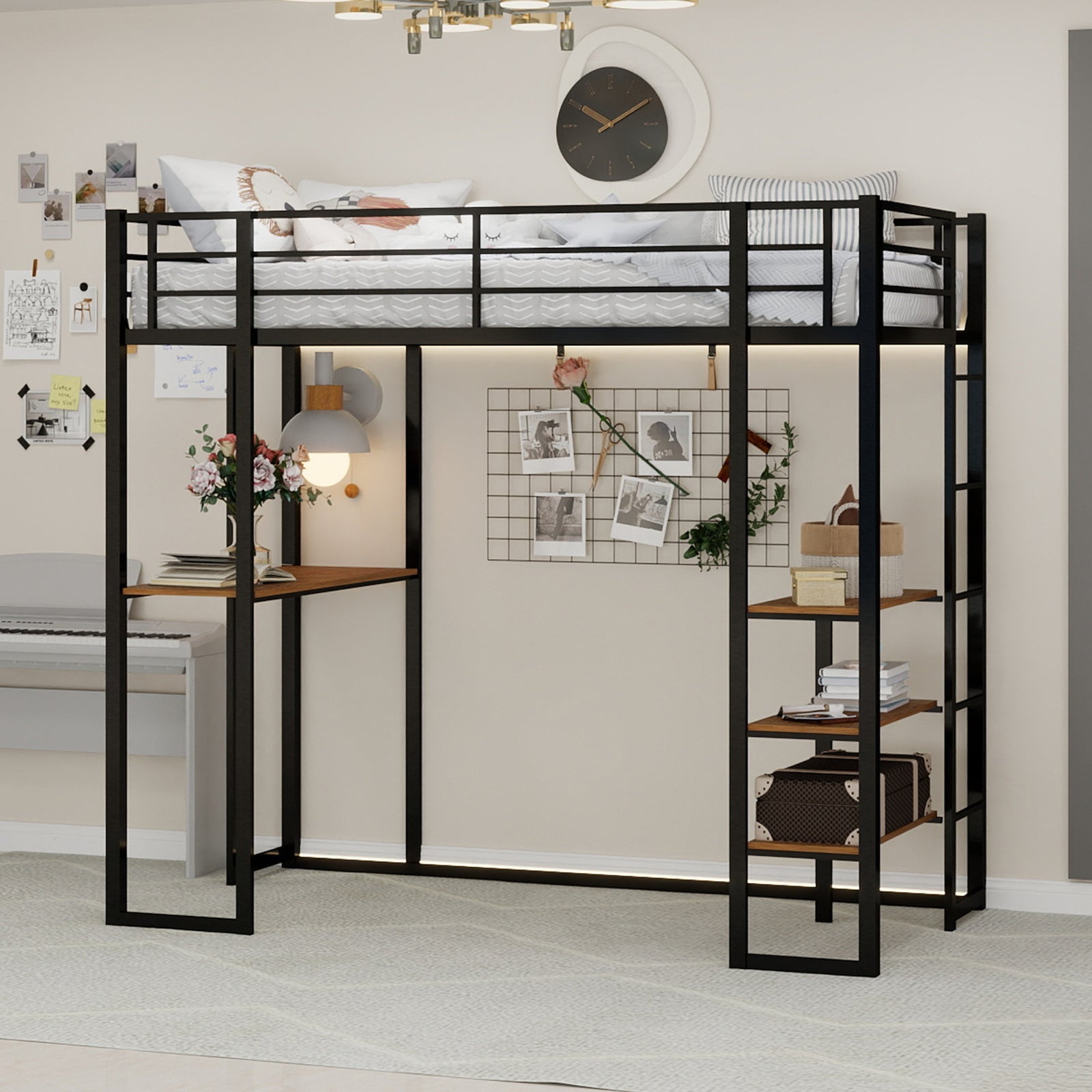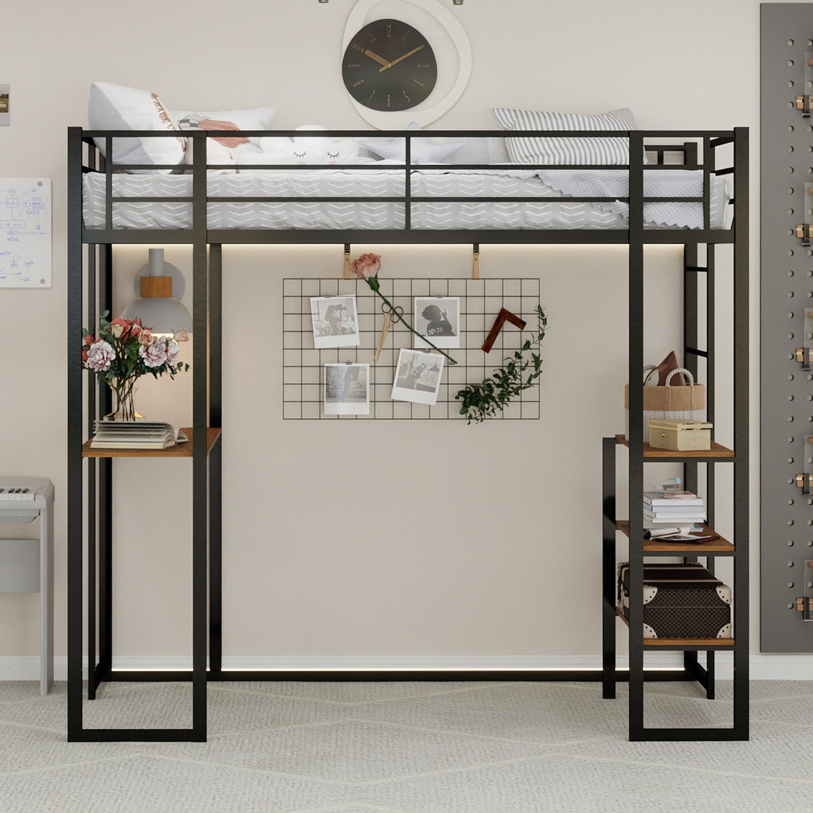 Iron Frame Bed, L-Shaped Desk, Railing & Reversible Stairs, Metal