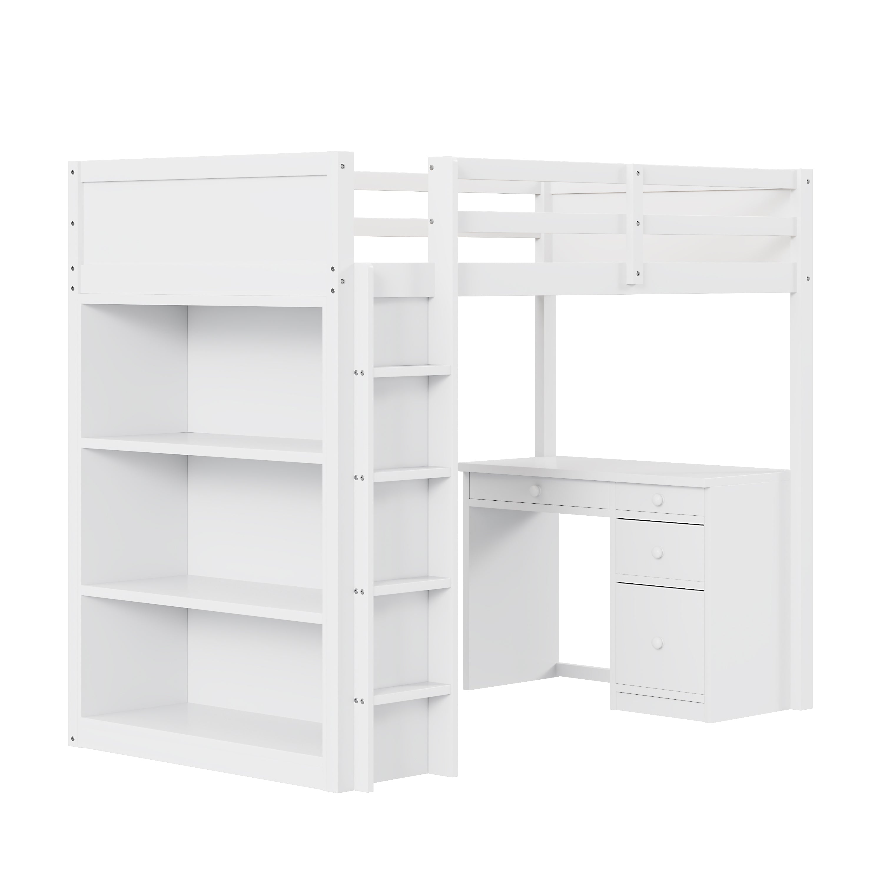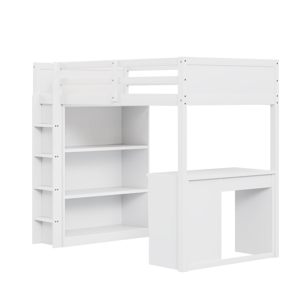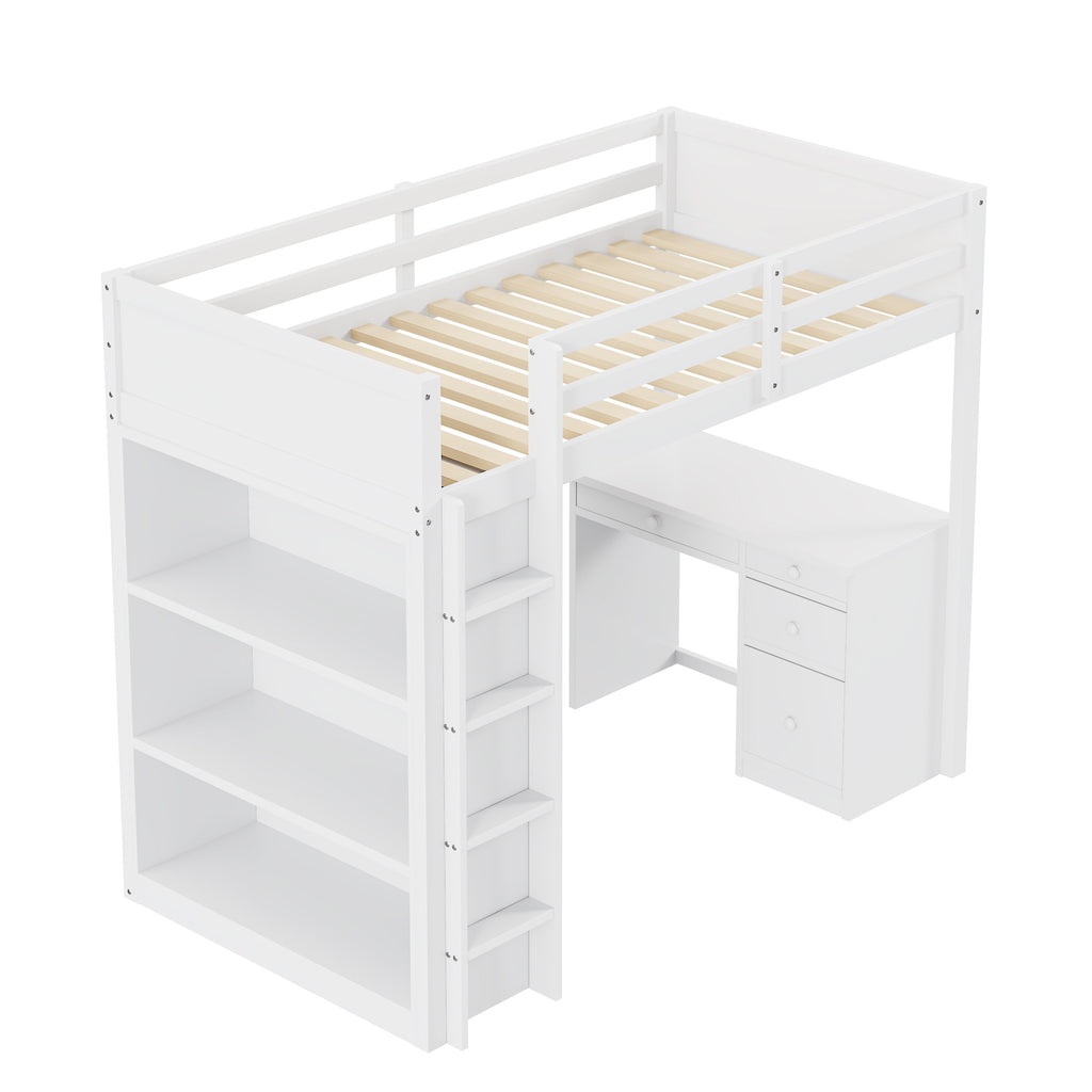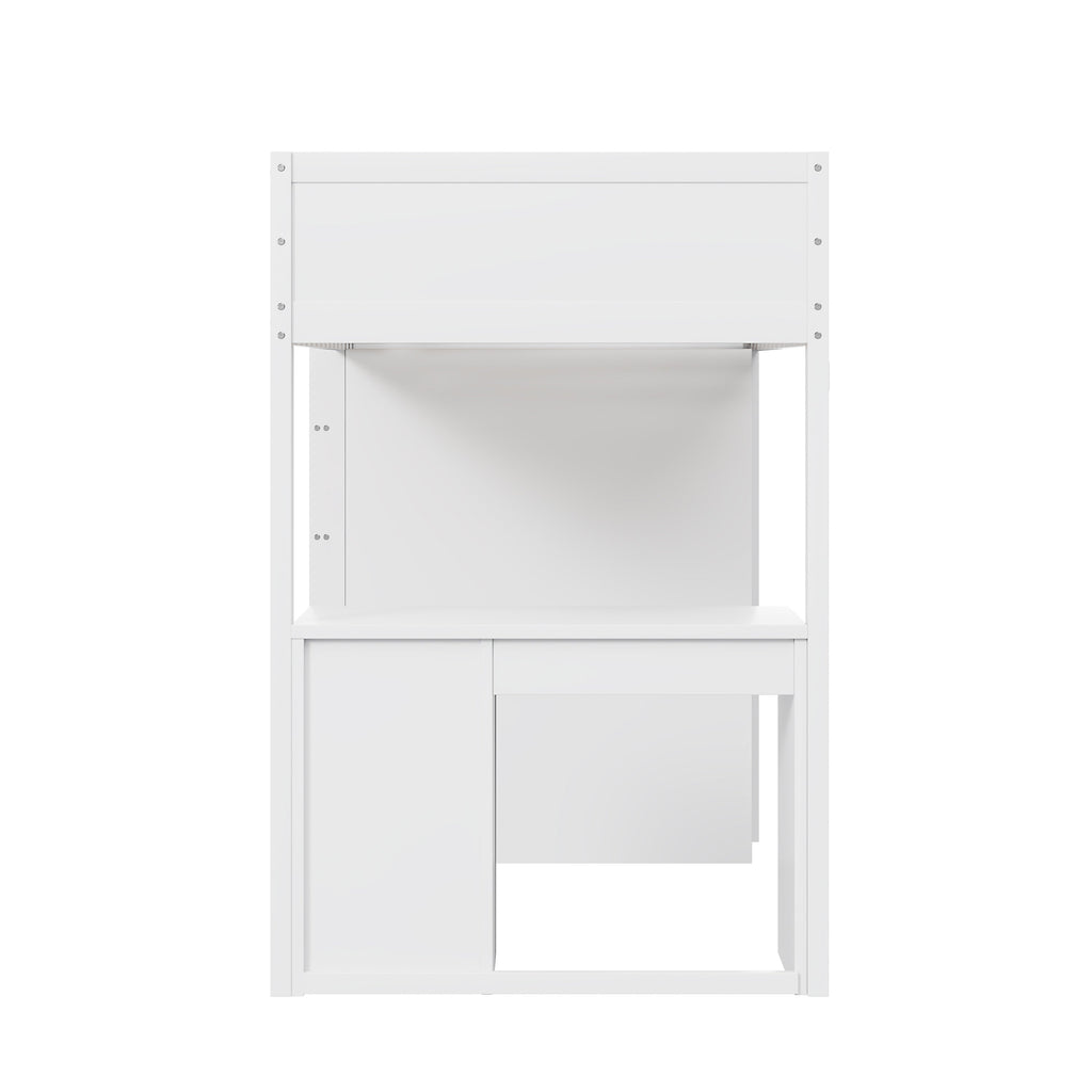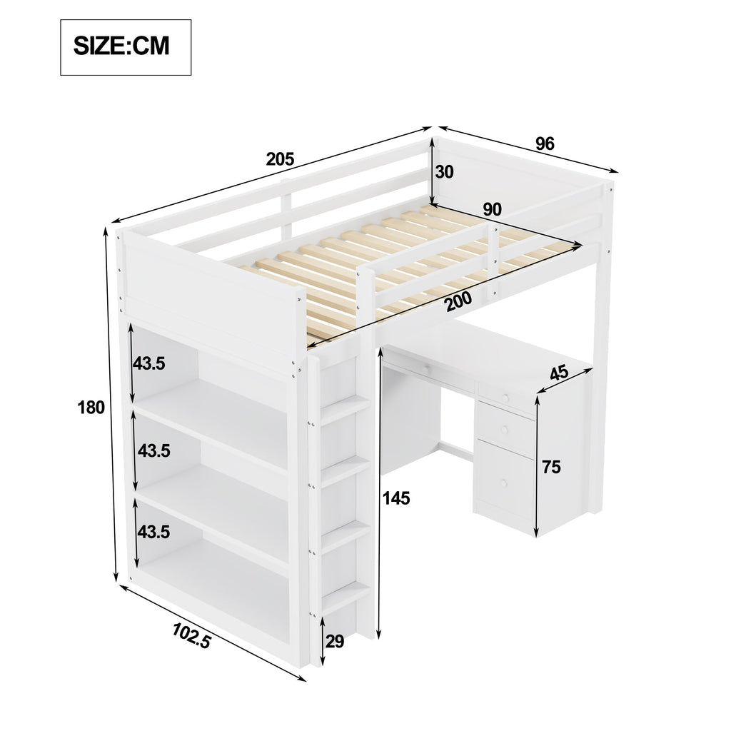 Loft Bed, 90x200 cm, Storage & Desk, Wood White