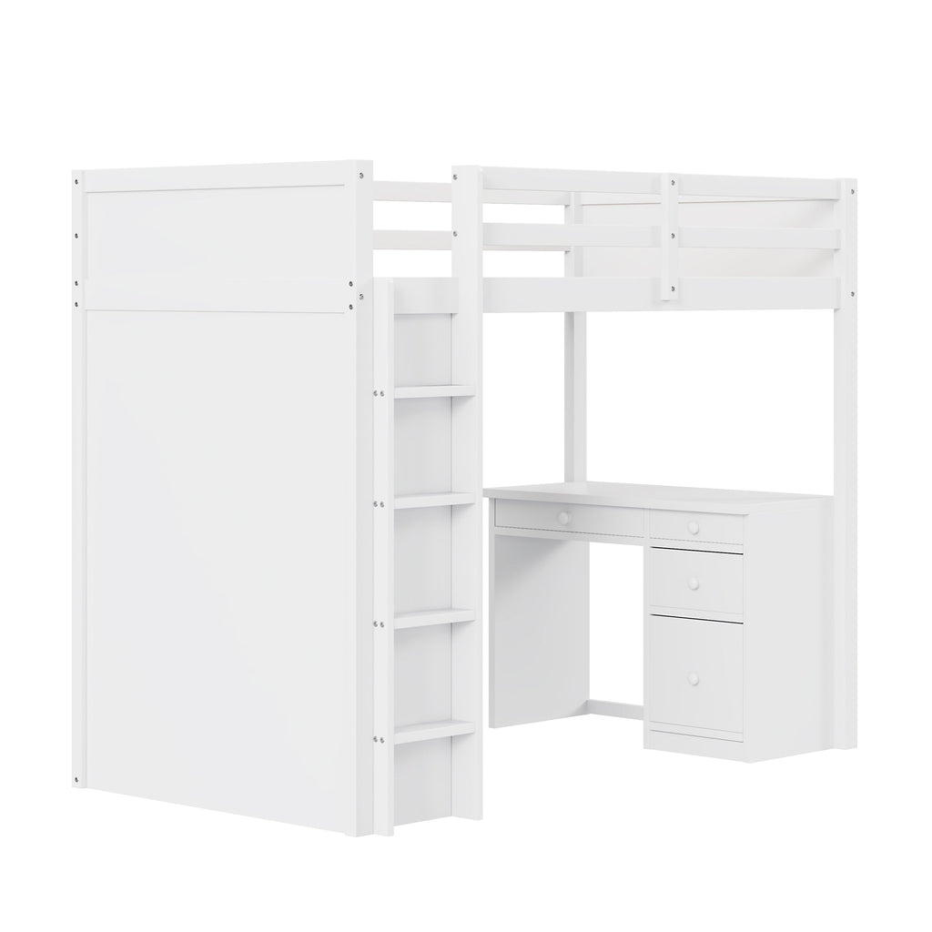 Enhance your child's room with our loft bed, a perfect blend of functionality and style. This precision-crafted bed features built-in storage and a computer desk, offering a space-saving solution that maximizes utility and comfort.