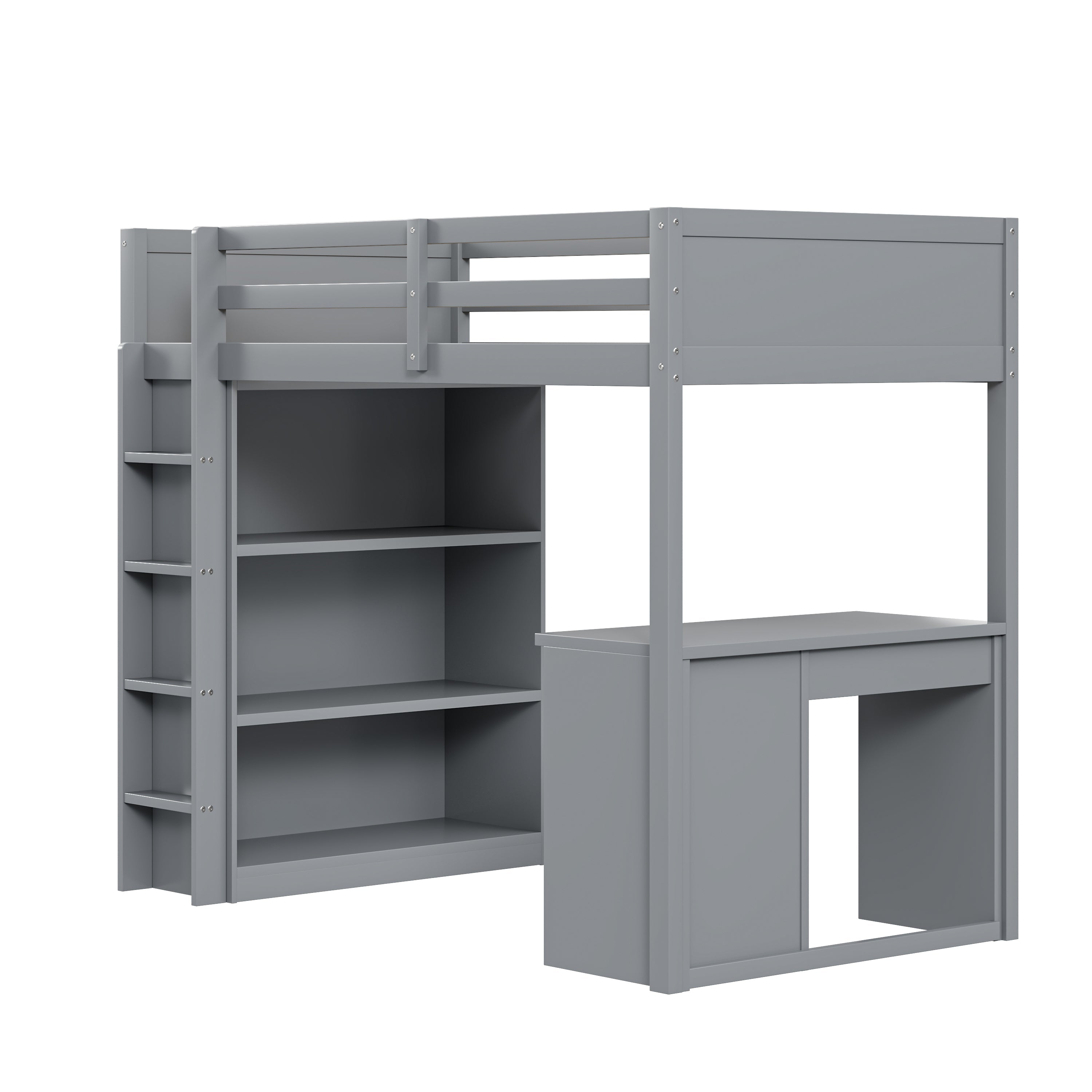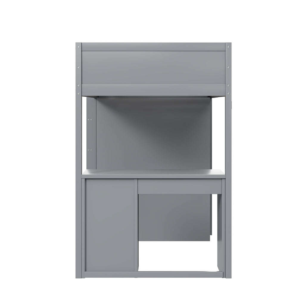 Loft Bed, 90x200cm with Storage & Desk, Wood Grey