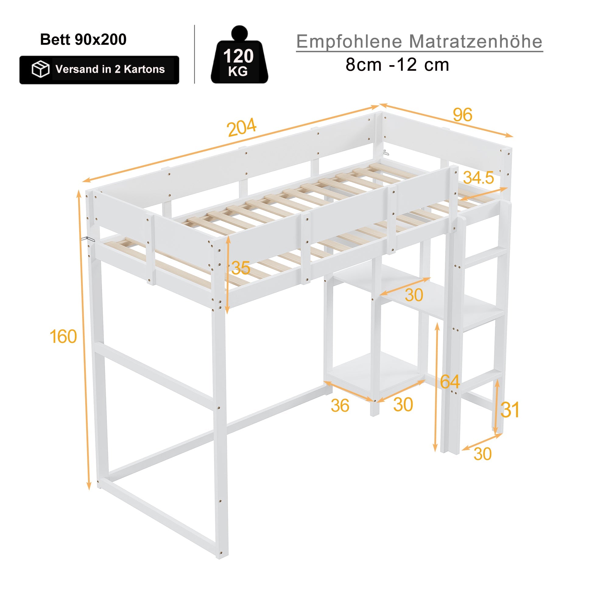 Assembly is straightforward with the included step-by-step instructions and all necessary parts. Whether you want to optimize space in a small apartment or create a fun and functional bedroom for your child, our loft bed with storage shelf is the perfect solution. Invest in a piece that combines quality, style, and functionality, and watch your child's room transform into an oasis of comfort and organization.