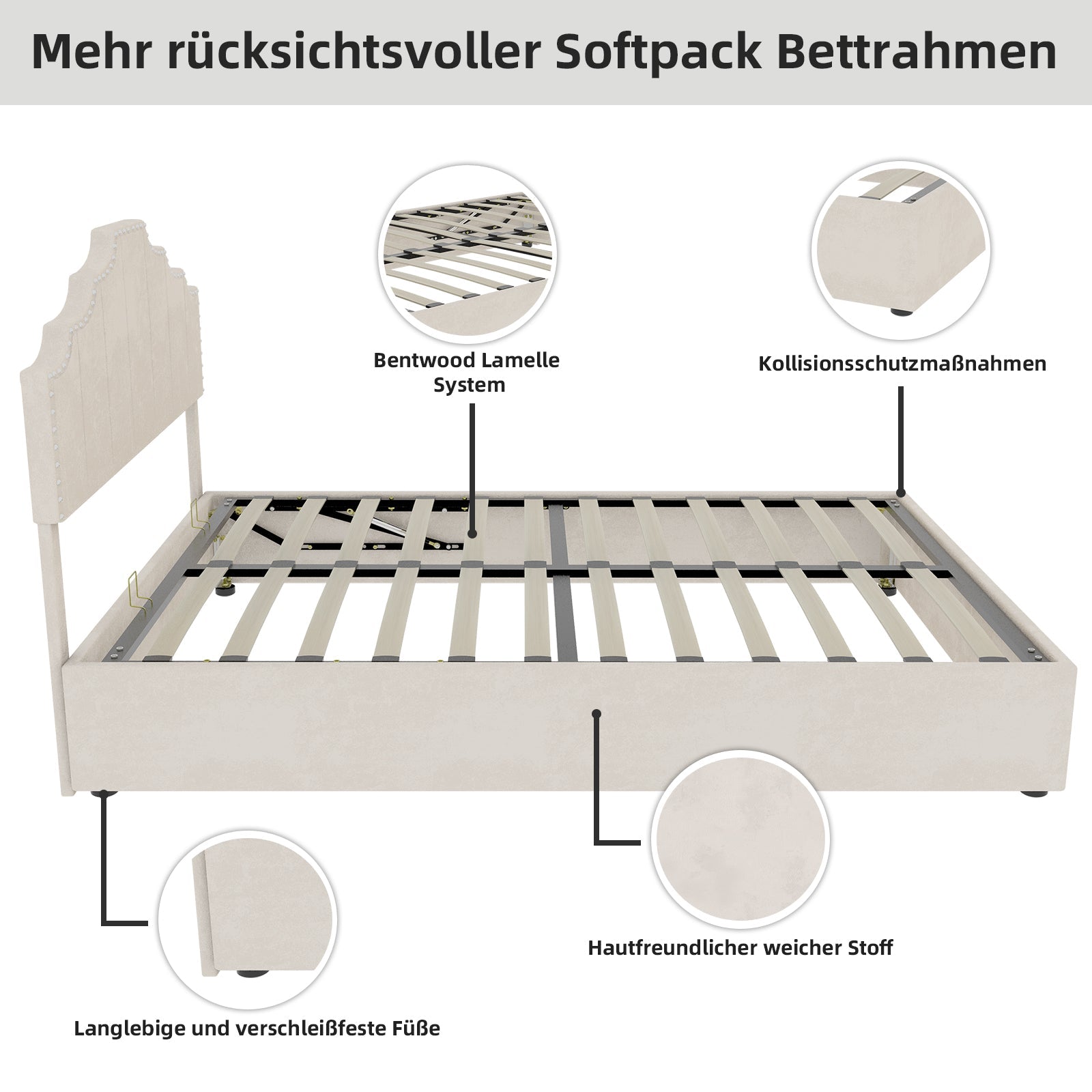 The bed frame's dimensions are rationally and scientifically designed to fit common mattress sizes such as 140x200 cm and 160x200 cm. It can be flexibly integrated into various bedroom layouts and meet various needs. Please note that the mattress is not included.