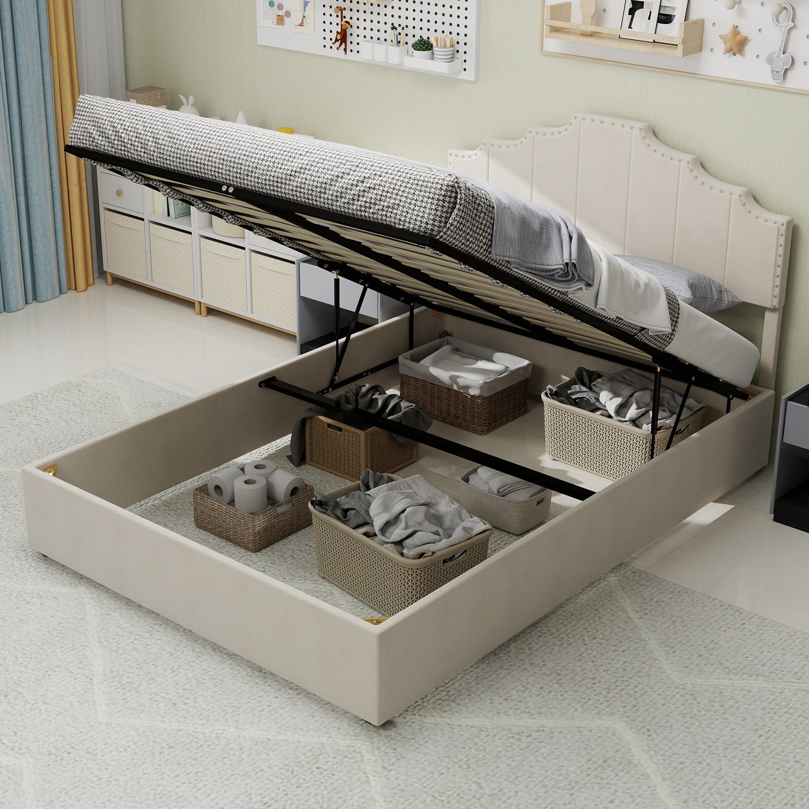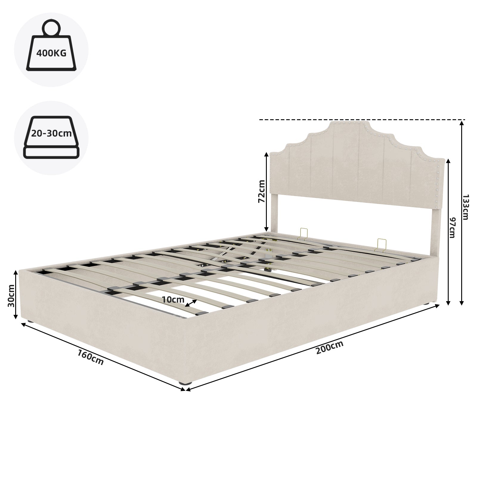 Modern Minimalist Soft Bed 160x200cm Hydraulic High Box Frame, Beige