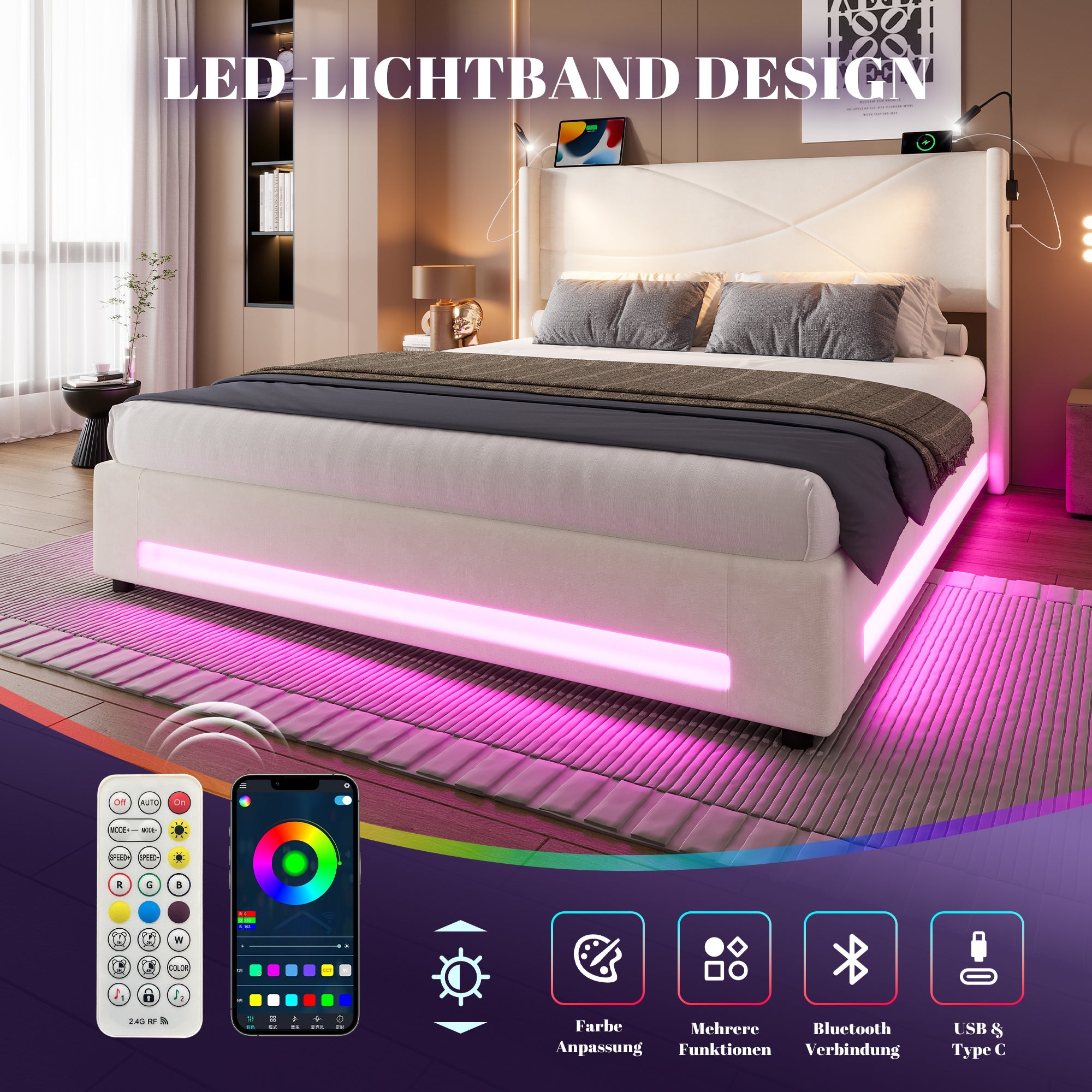 No more searching for power outlets! The bed frame is equipped with USB ports so you can charge your devices right in bed. From smartphones and tablets to e-readers, everything is within easy reach and ready to use. Transform your bed into a true smart home hub and enjoy the comfort that modern technology can offer.