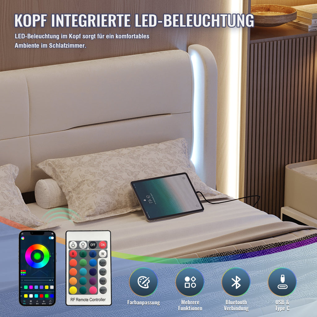 Elegant Headboard Lighting: Integrated LED lighting in the headboard creates a relaxing atmosphere. The soft lighting provides restful comfort and relaxation after a busy day, perfectly complementing the modern design and adding a touch of elegance to your bedroom.