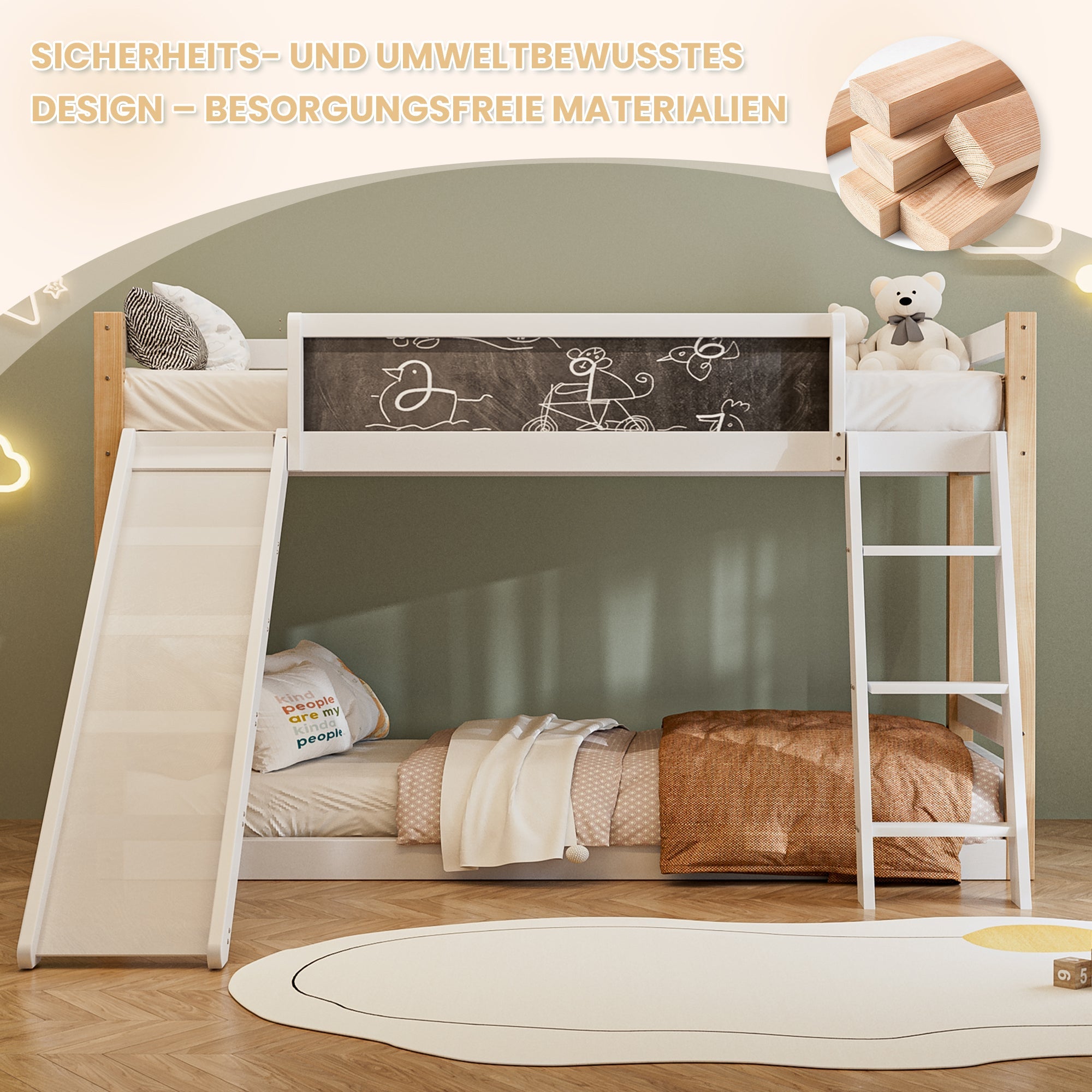 Bunk Bed for Children with Slide & Stairs, Safety Rail, Wood+PB Frame