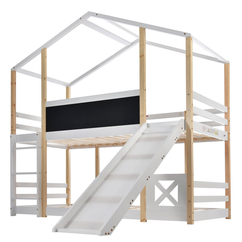 Children's Bed Tree House, Loft Bed with Slide & Ladder, 90x200cm, Natural & White