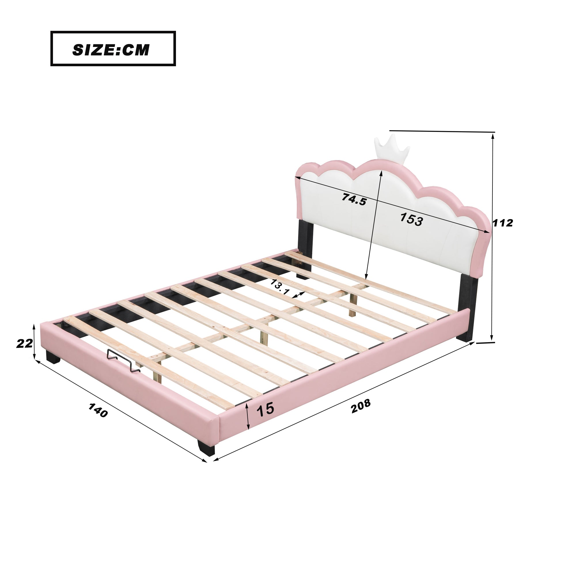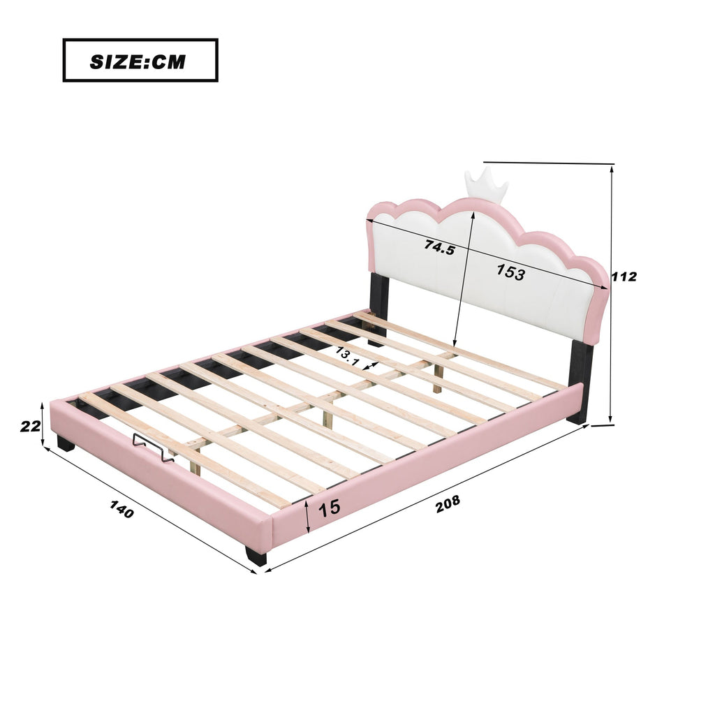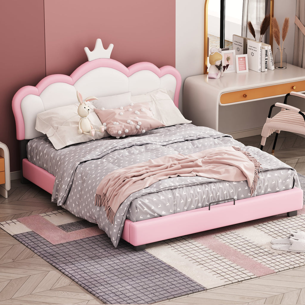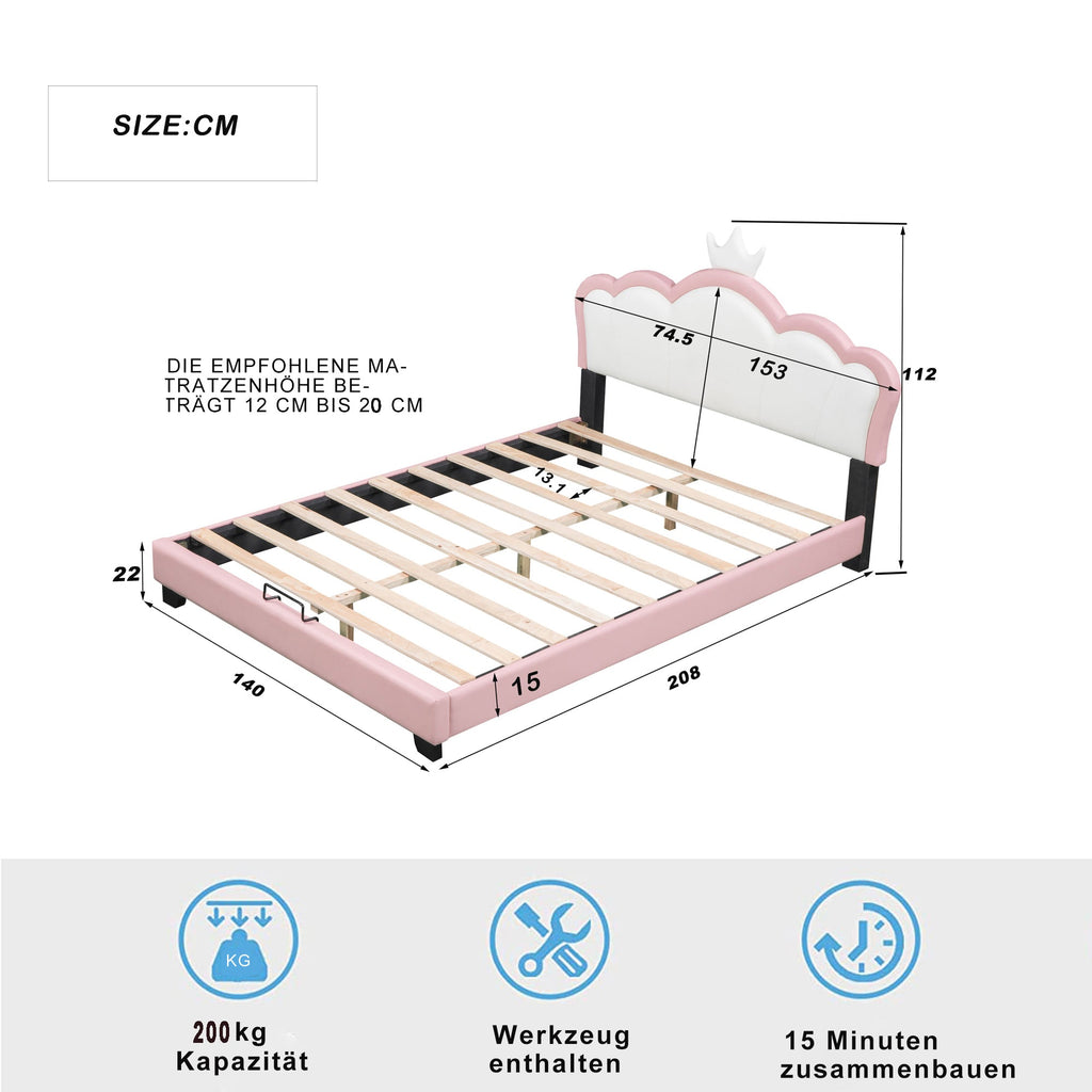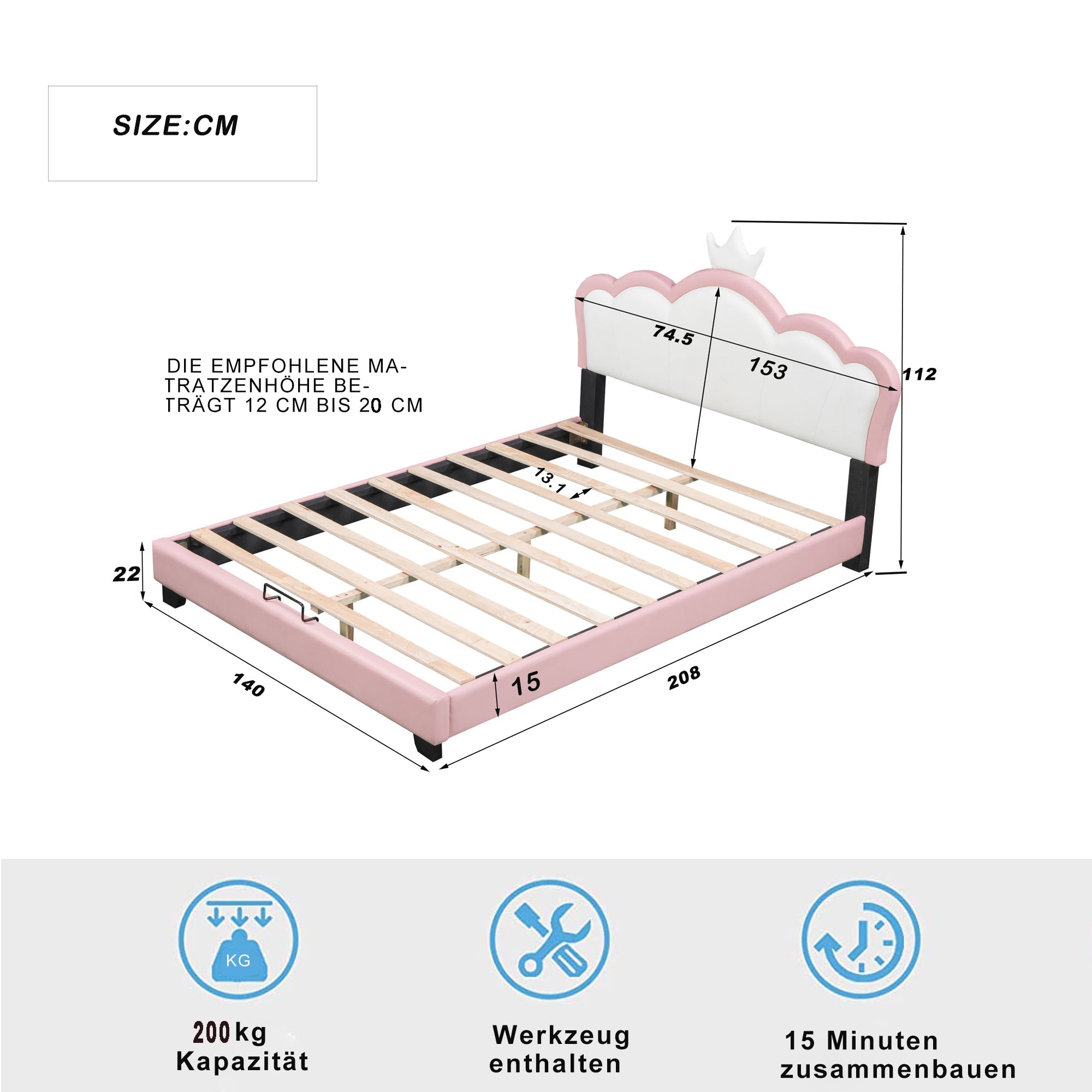 Children's Bed Upholstered with Slatted Frame & Crown Molding, Pink