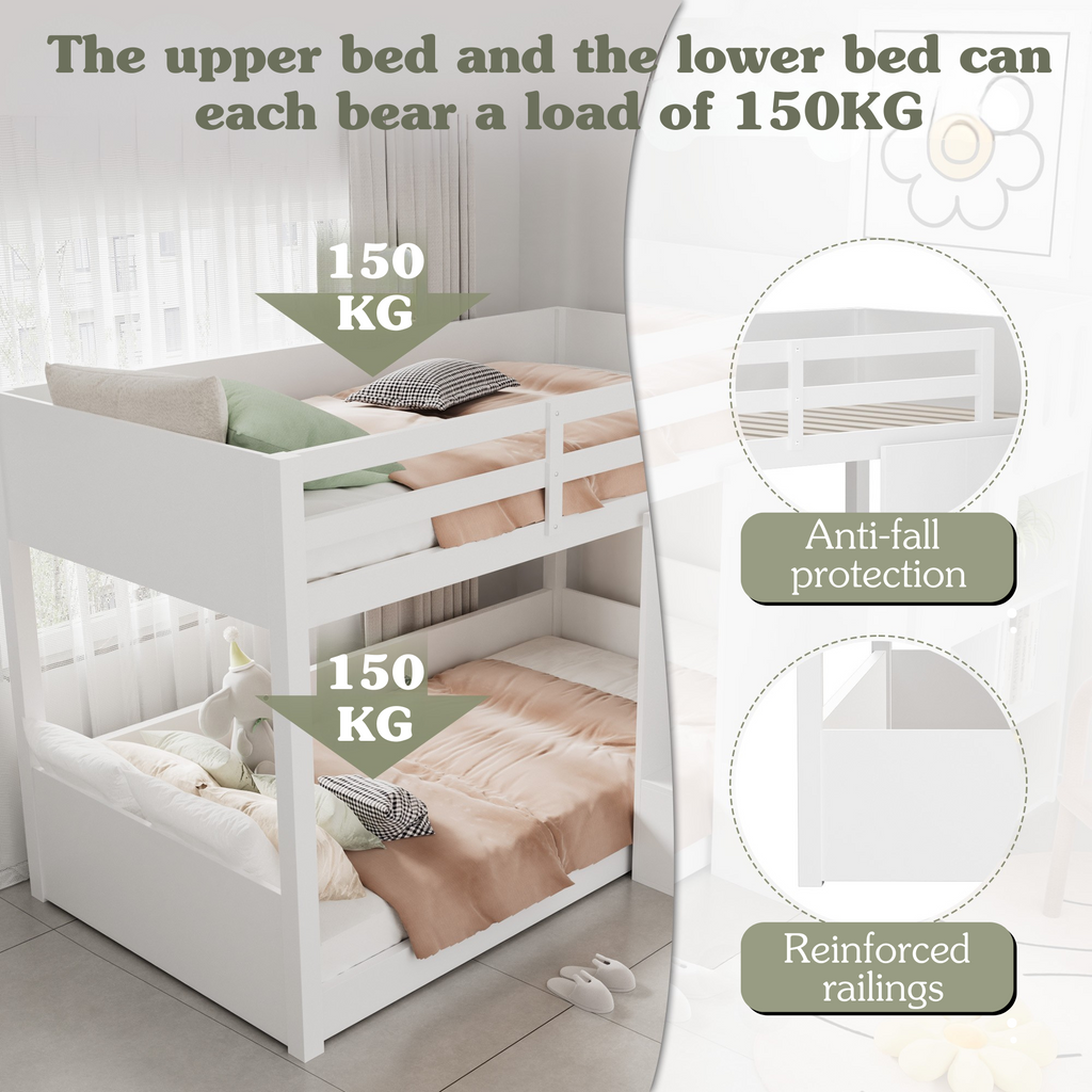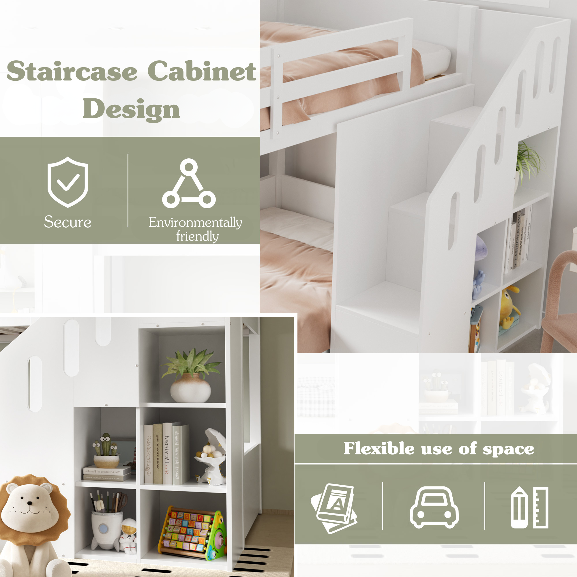 Children's Bunk Bed, Multifunctional with Stairs & Storage, 2 Single Beds (3ft), White