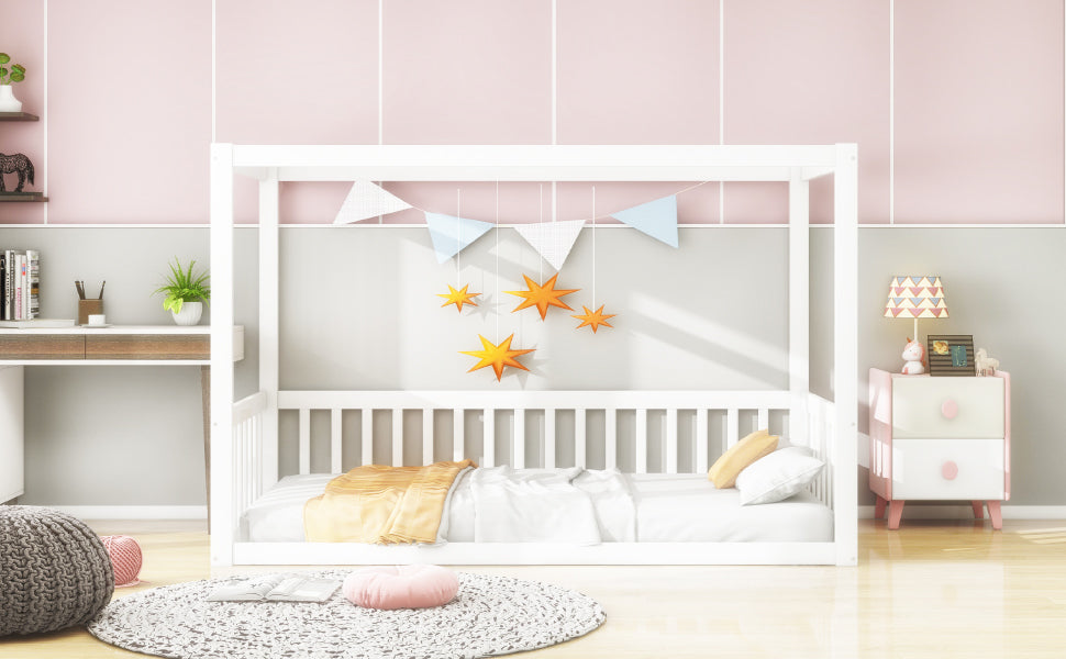 The charming canopy frame design not only adds a cozy atmosphere to any child's room but also offers countless possibilities for customization. With colorful lights, fabrics, or decorations, you can create a magical place where your child will feel at home.