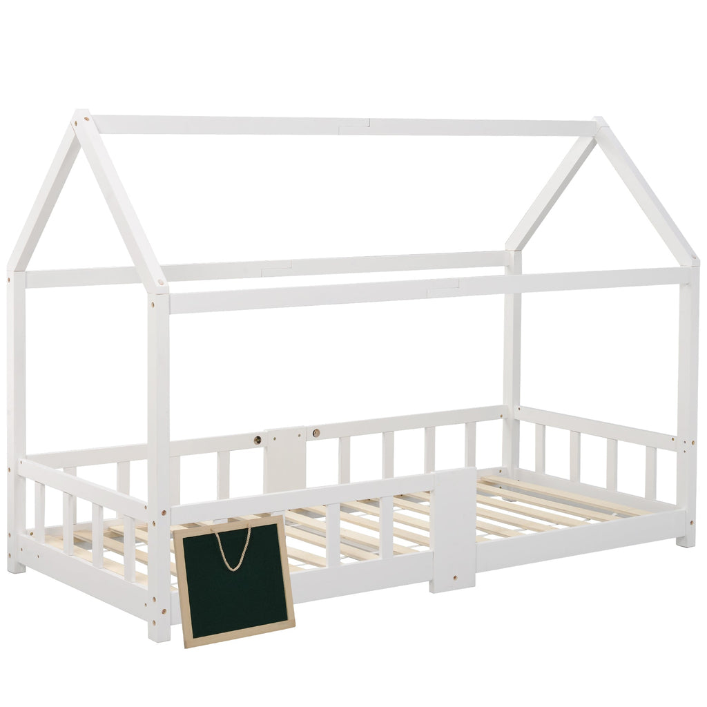 Children's House Bed with Blackboard & Slatted Frame