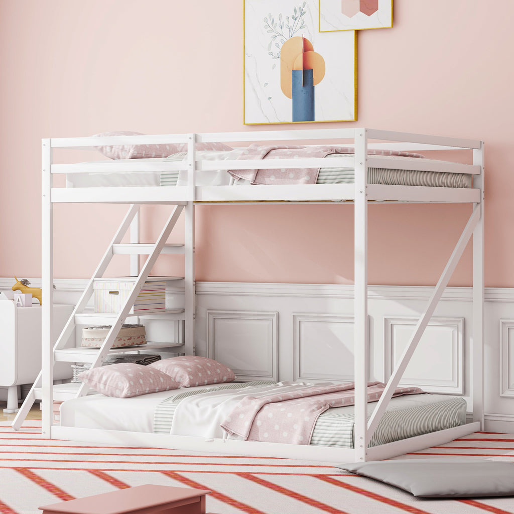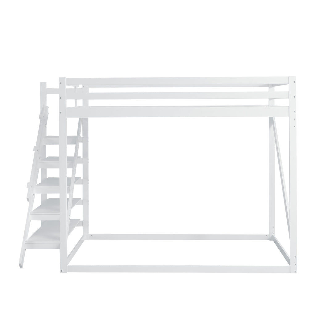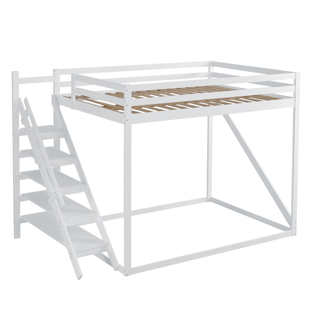 Children's Loft Bed 140x200, Solid Wood with Safety Ladder, White