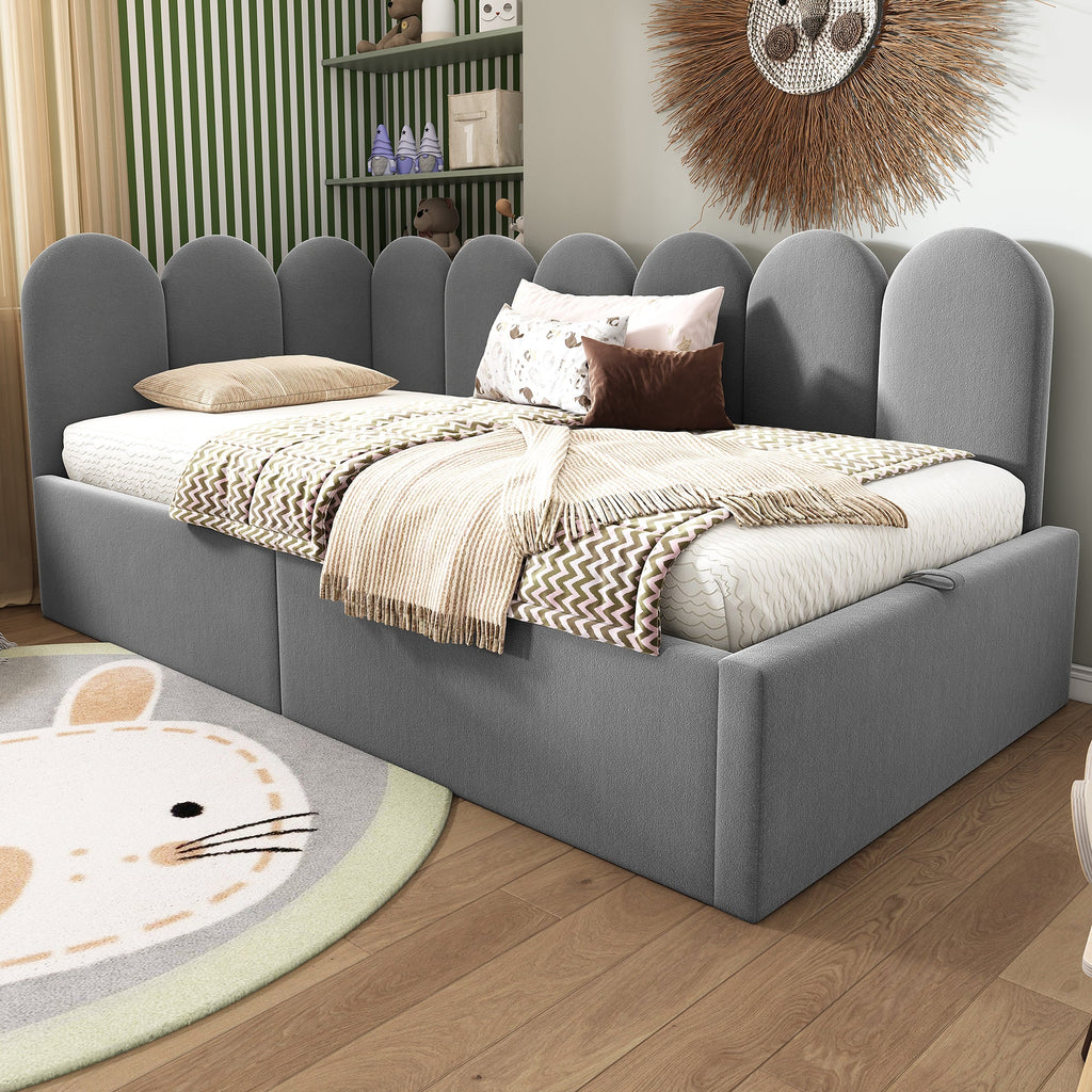 Daybed, Upholstered Sofa Bed with Hydraulic Storage, 90x190 cm, Velvet Gray