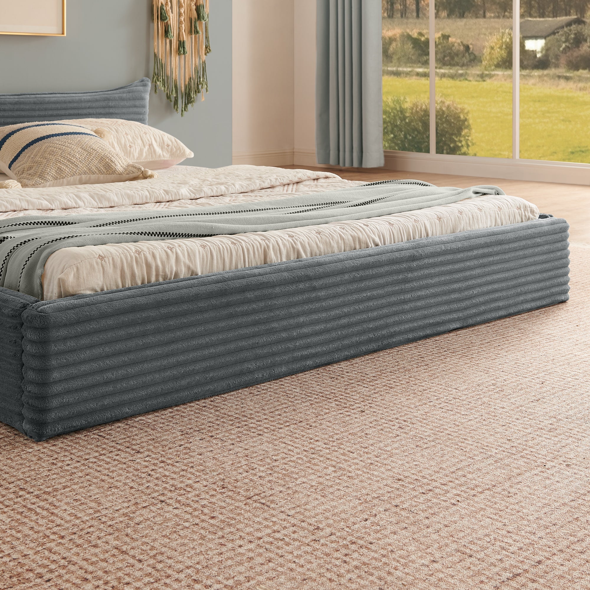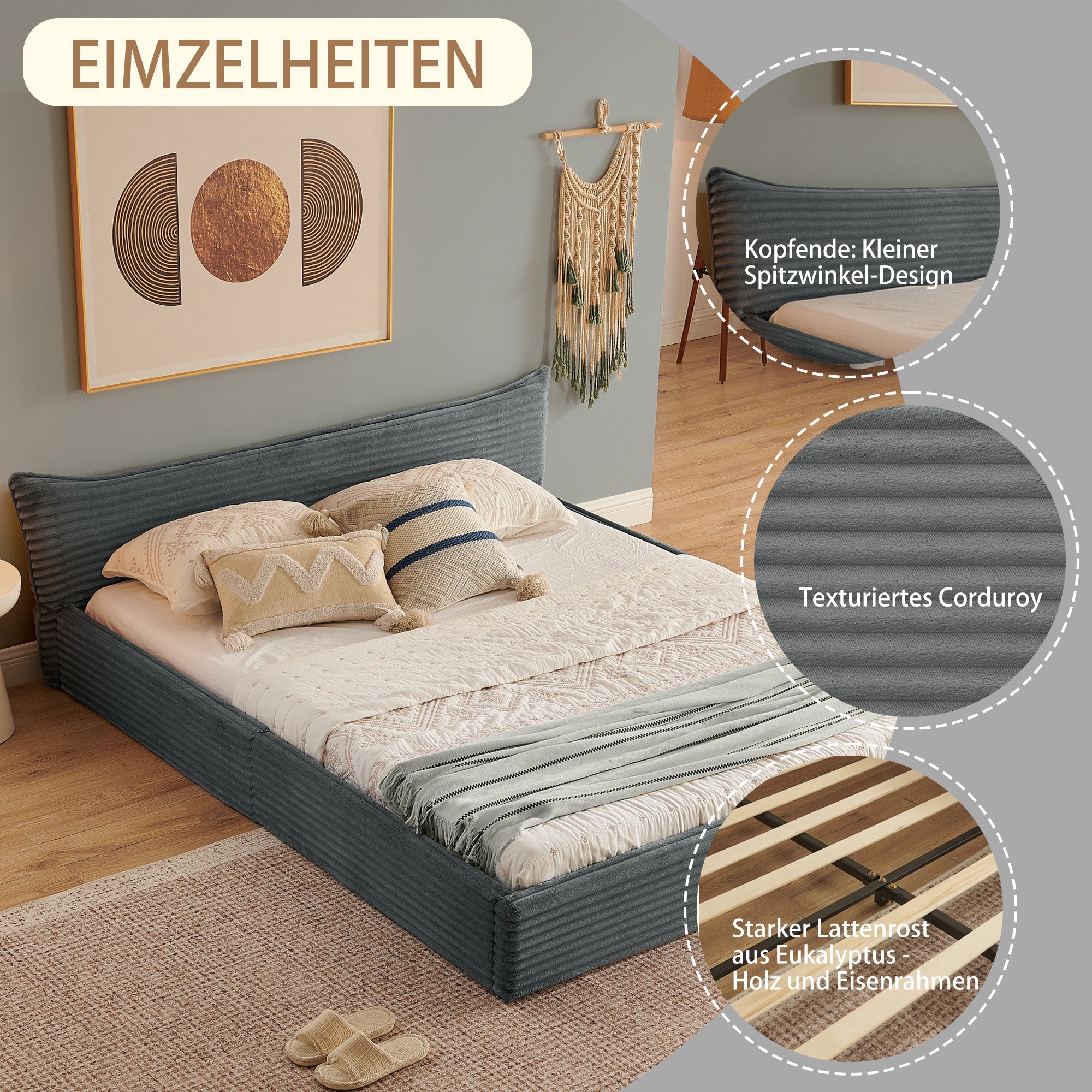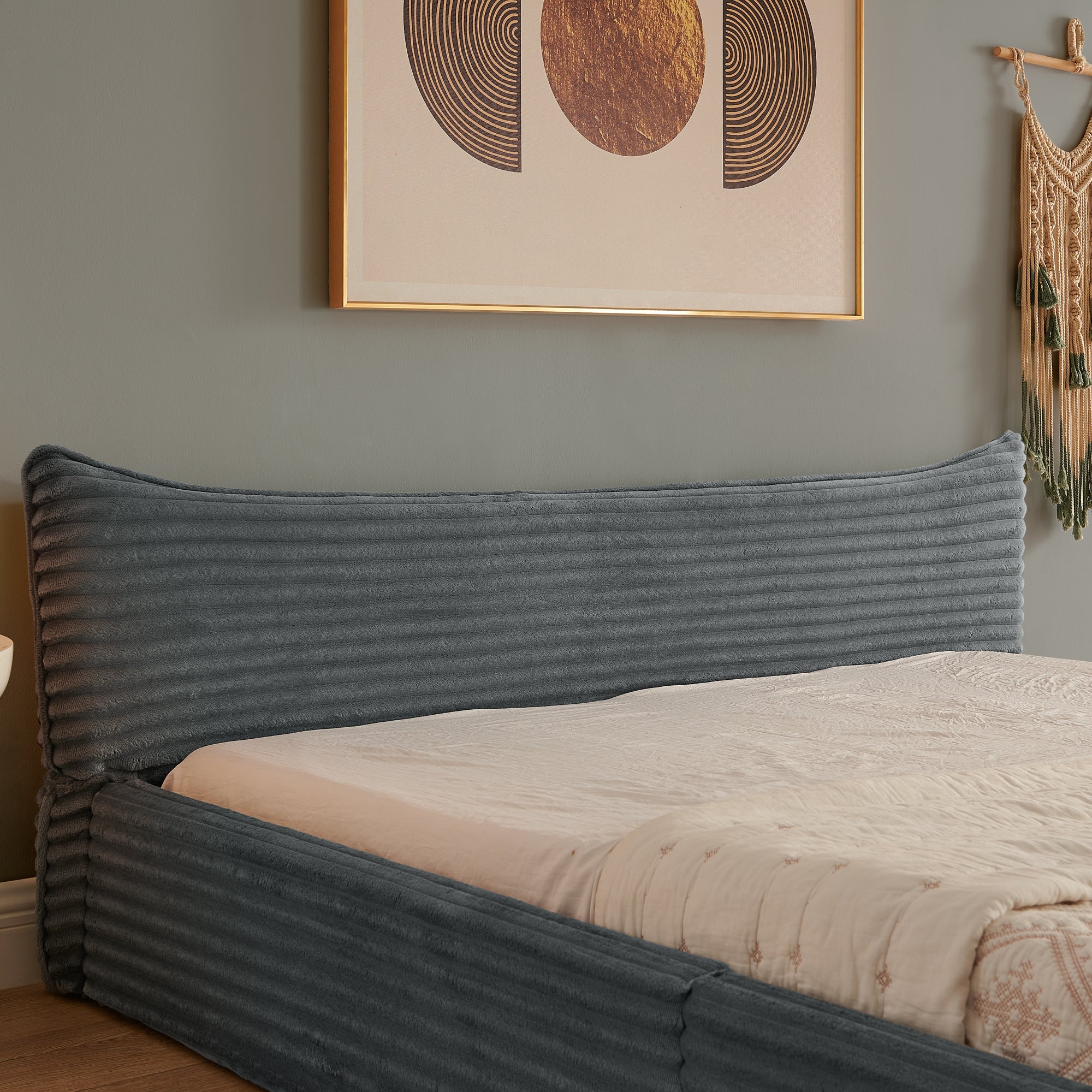 Double Bed 140x200cm, Corduroy Headboard Eucalyptus Wood Frame, Dark Grey