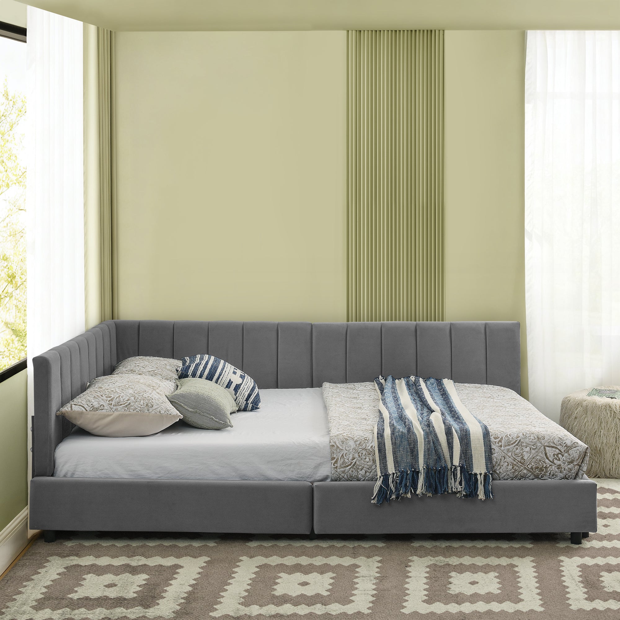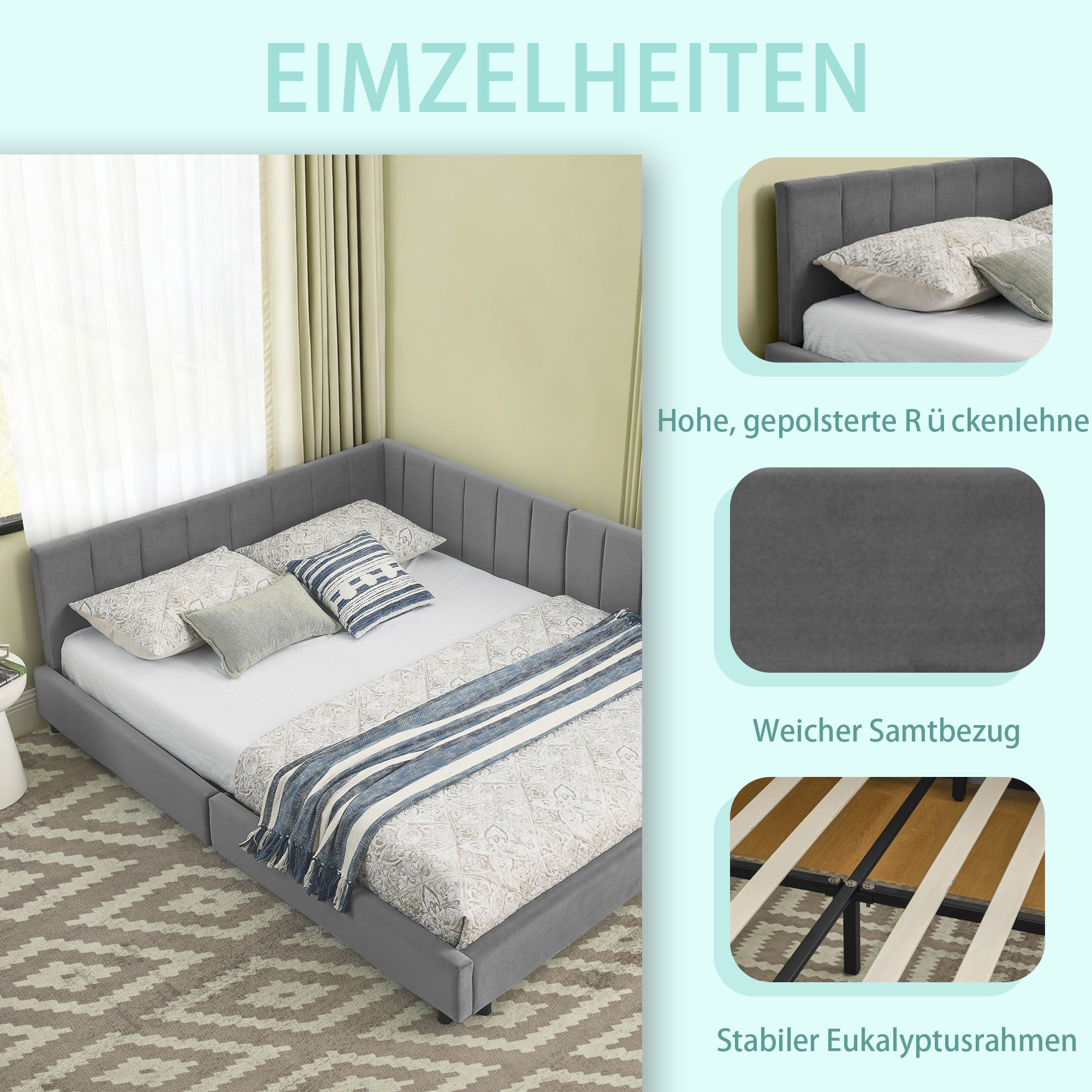 Double Bed 140x200cm High Backrest, Dark Grey Velvet