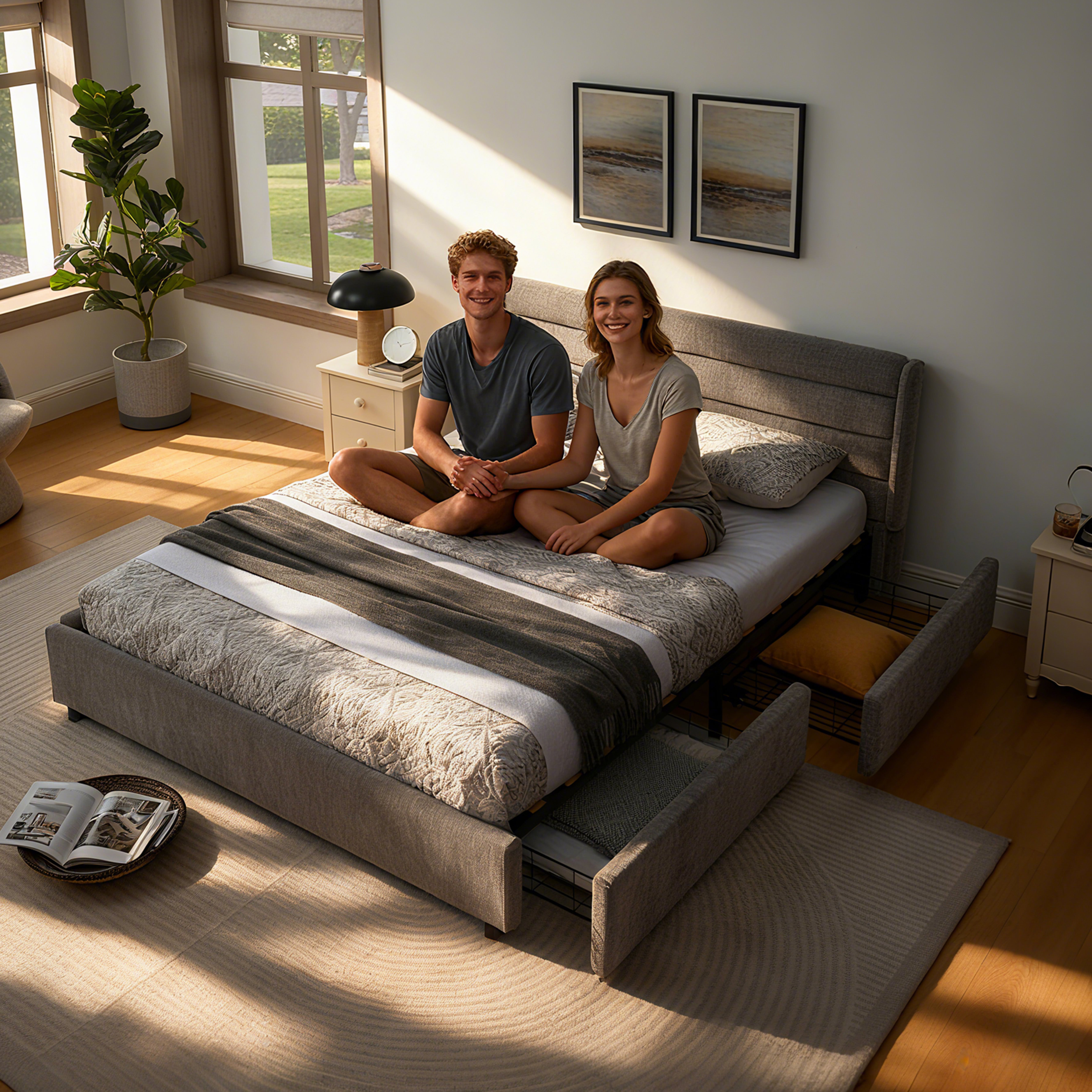 Storage Function: Two large drawers on each side of the bed make optimal use of side space, ideal for storing bedding, clothes, or toys, and keeping the room tidy.