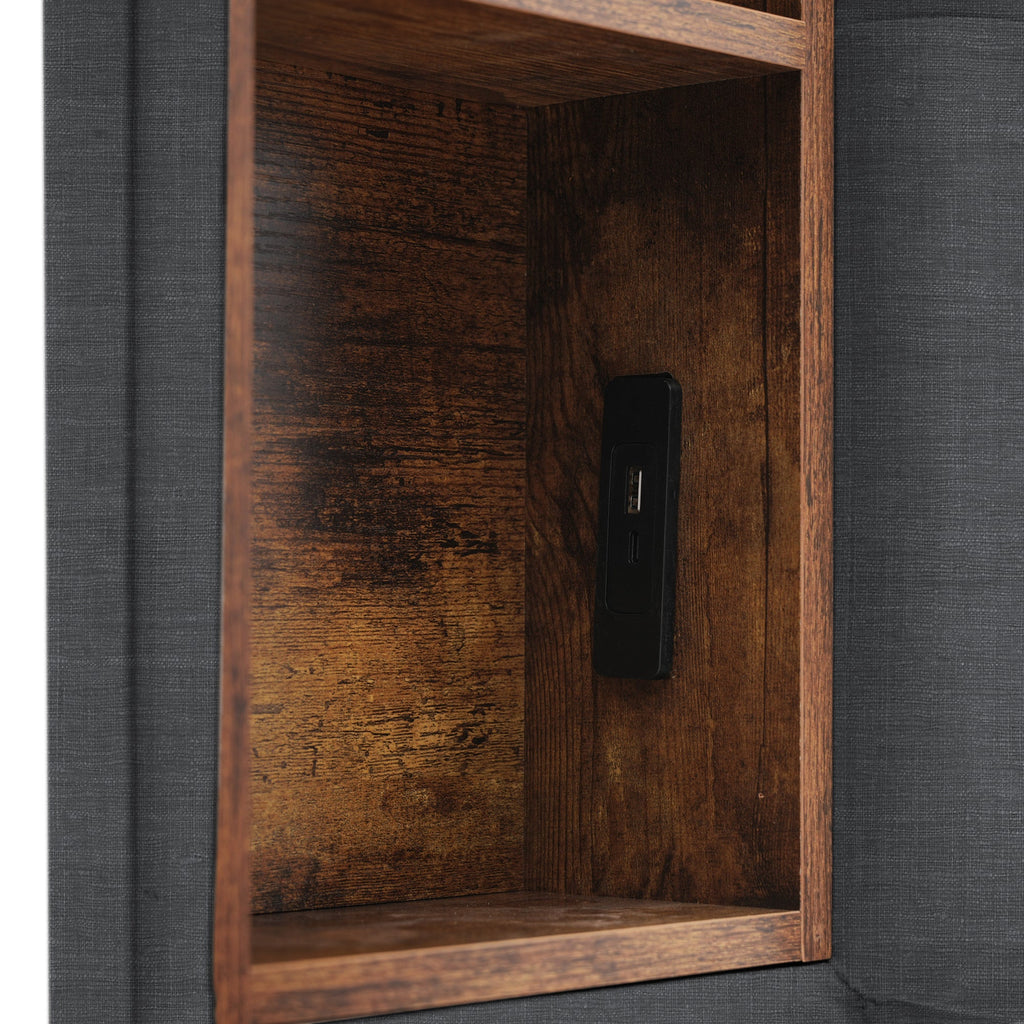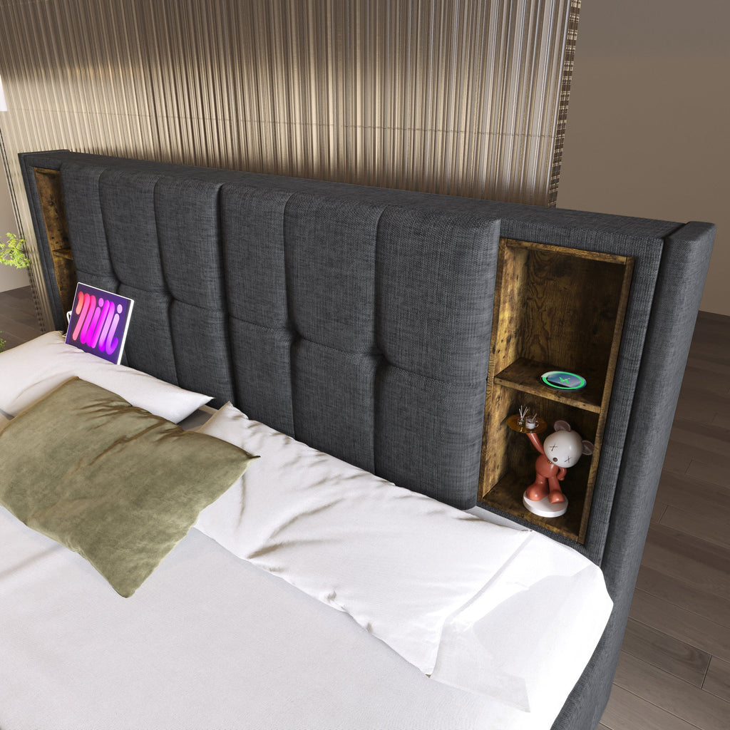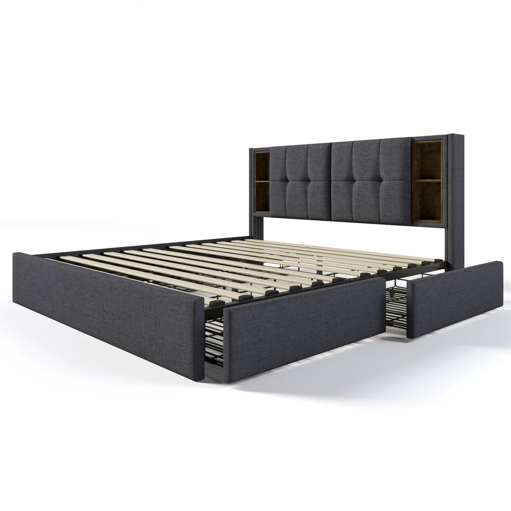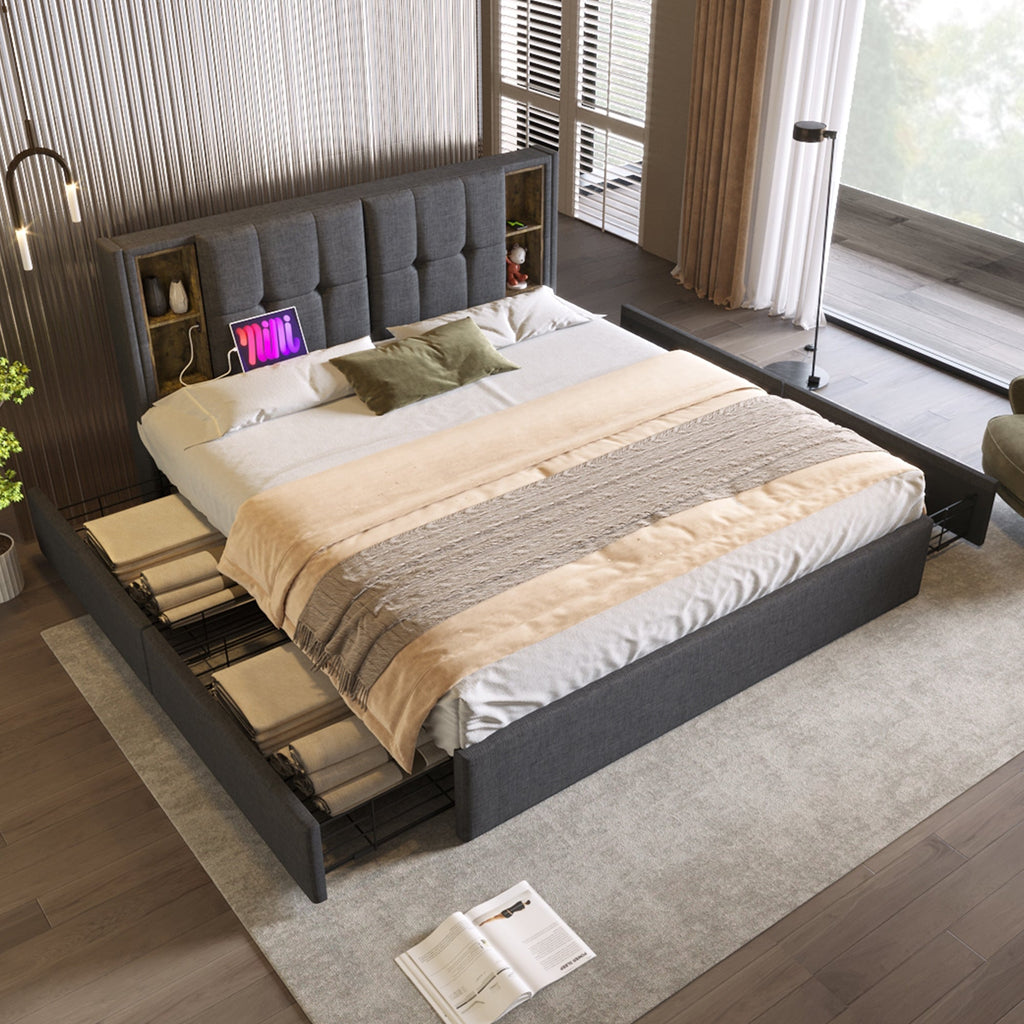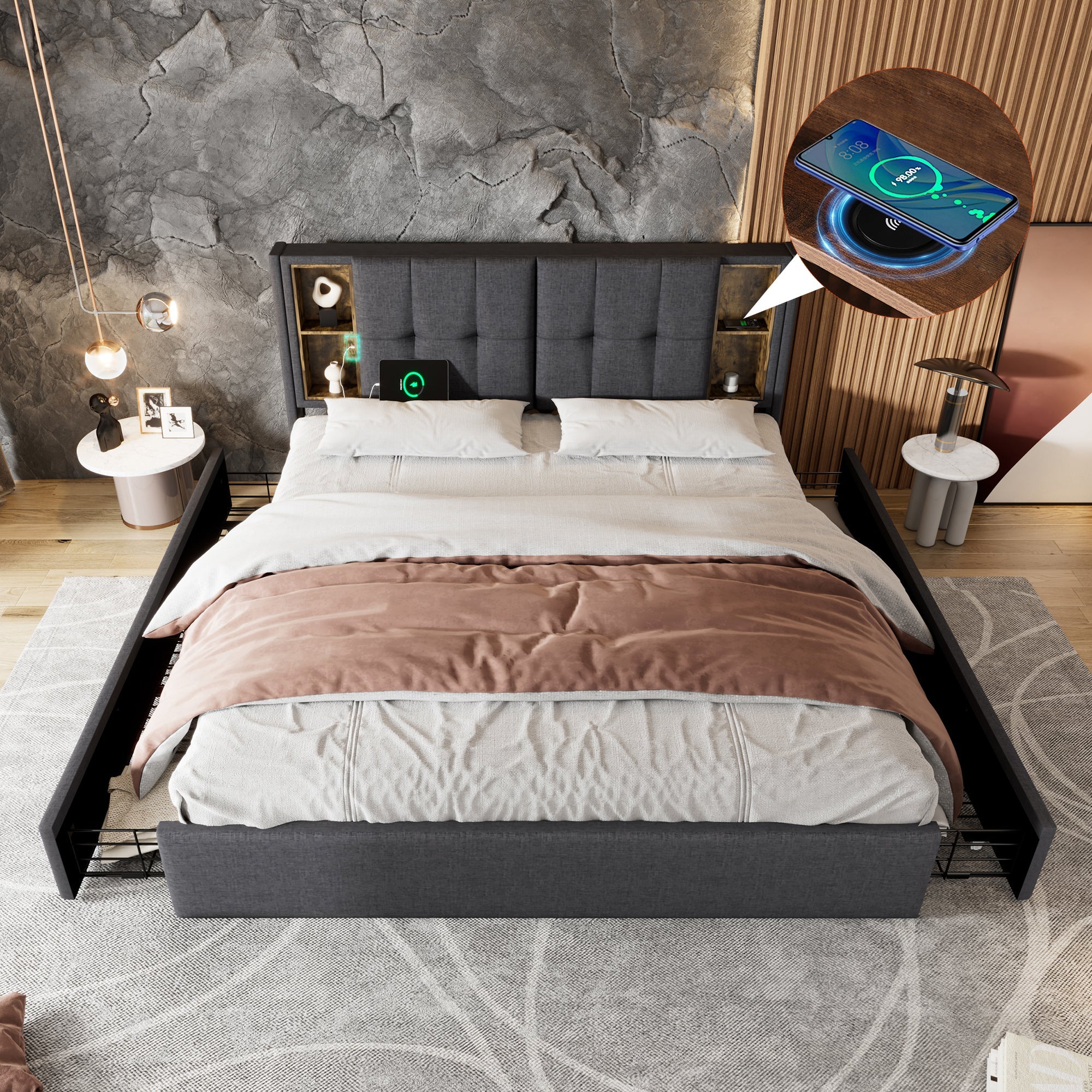 Double Bed, Wireless Charging & 4 Drawers, 160x200cm Grey Linen