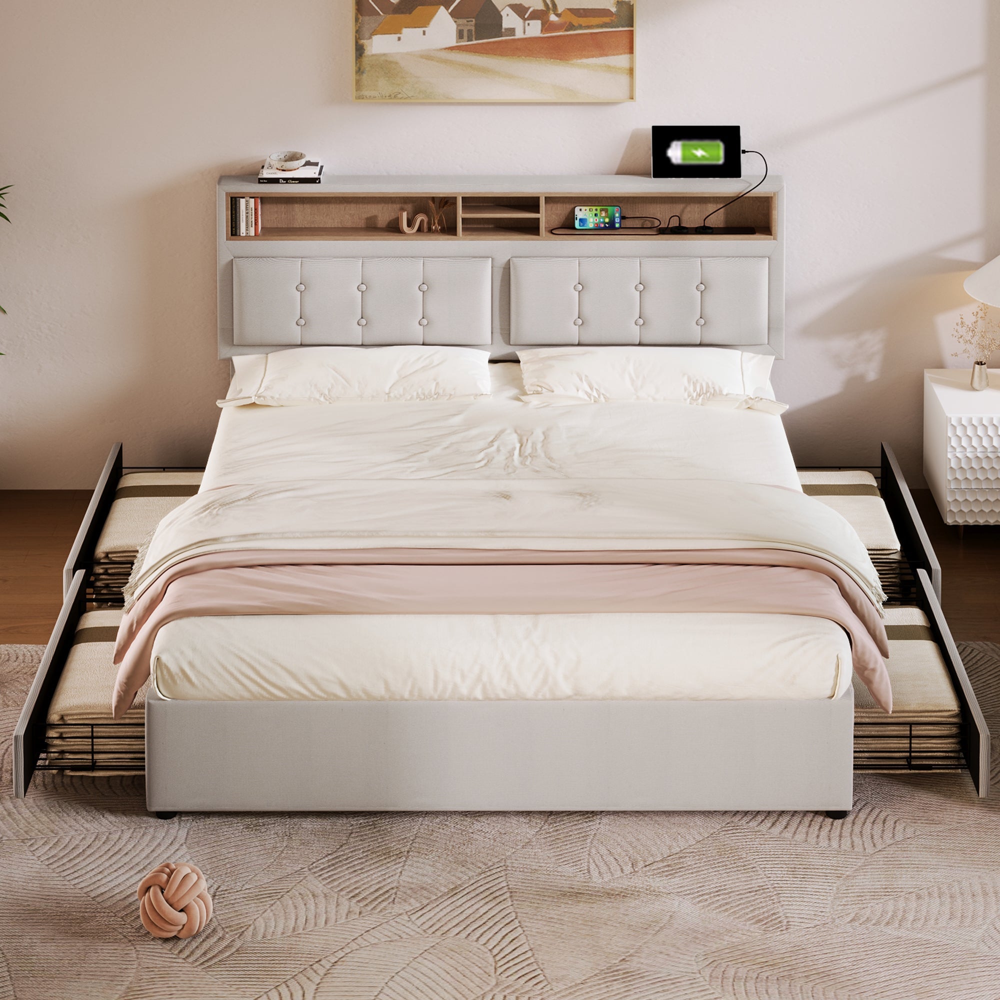 Package Contents: Bed Frame + Power Outlets + 4 Drawers.