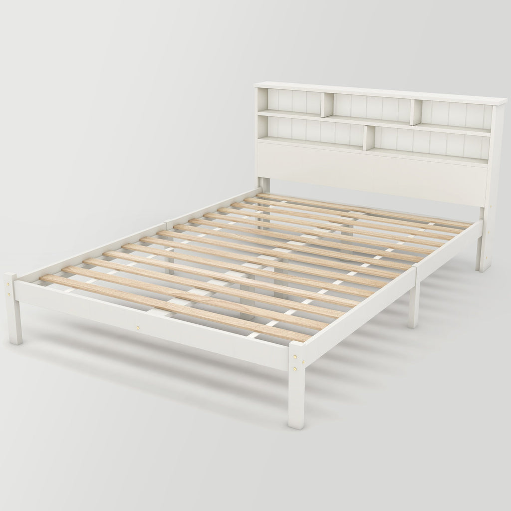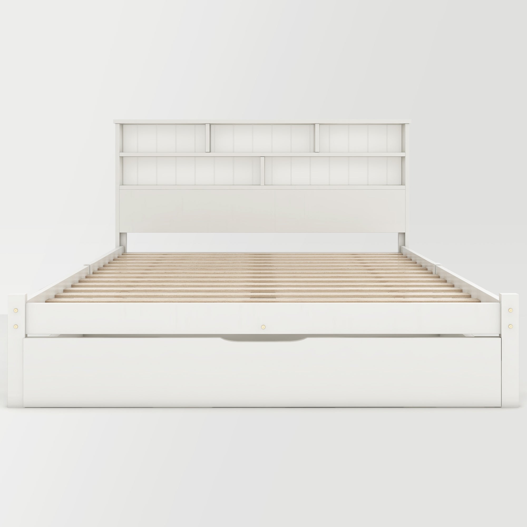 Double Bed with Drawers, Slatted Frame & Bookcase, 140x200cm White Solid Wood