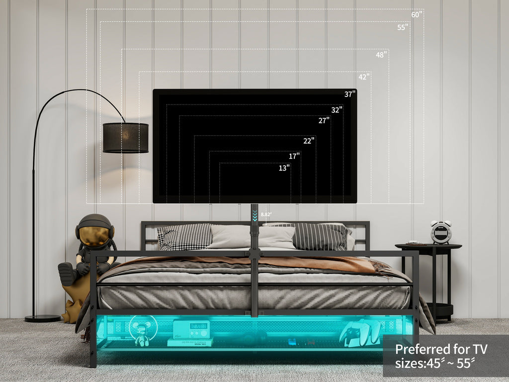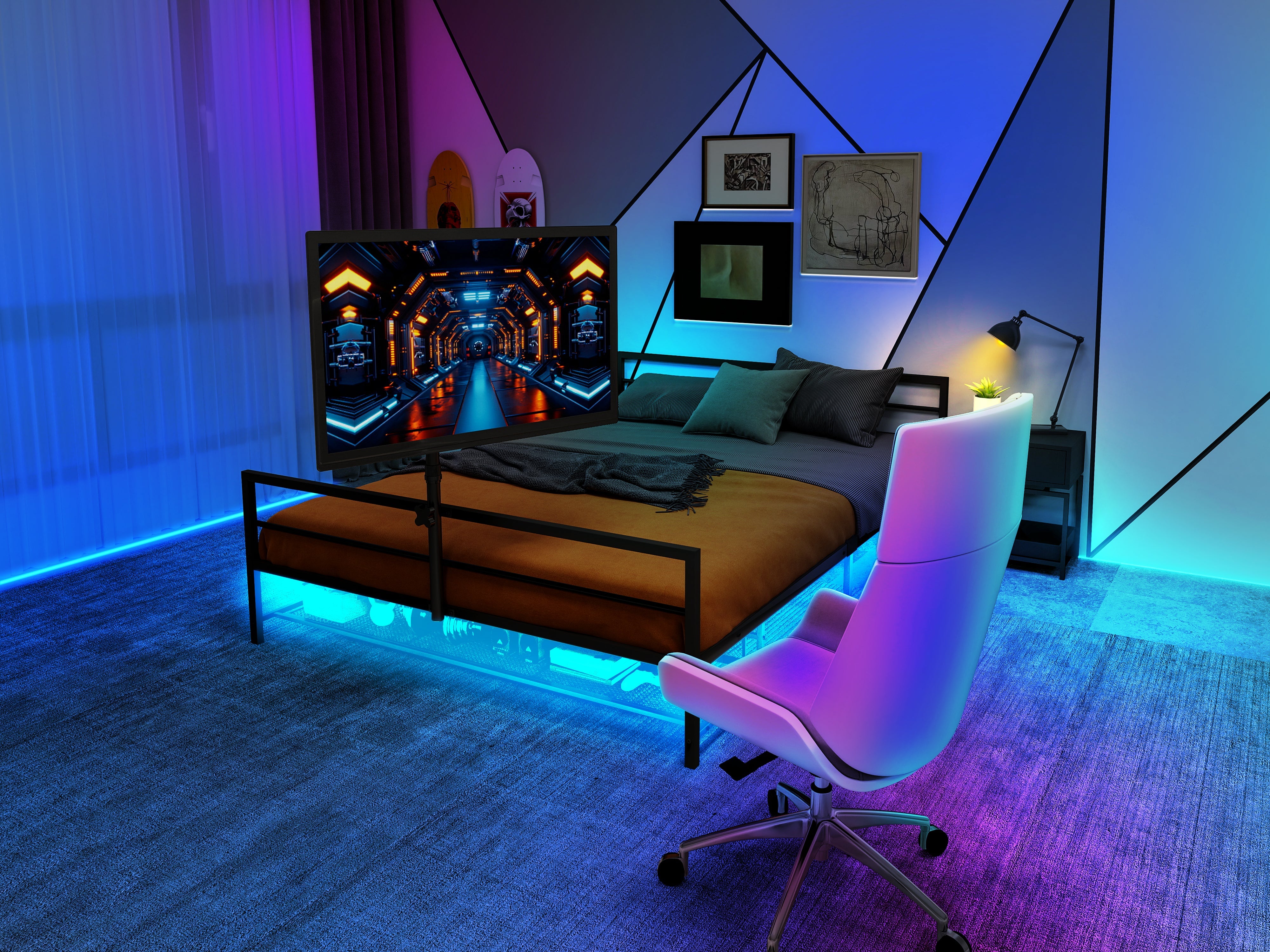 At the end of the bed frame is a metal bracket suitable for installing a monitor. This bracket can be adjusted to various angles to enhance the immersive gaming experience or enable multifunctional use.