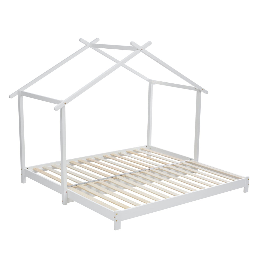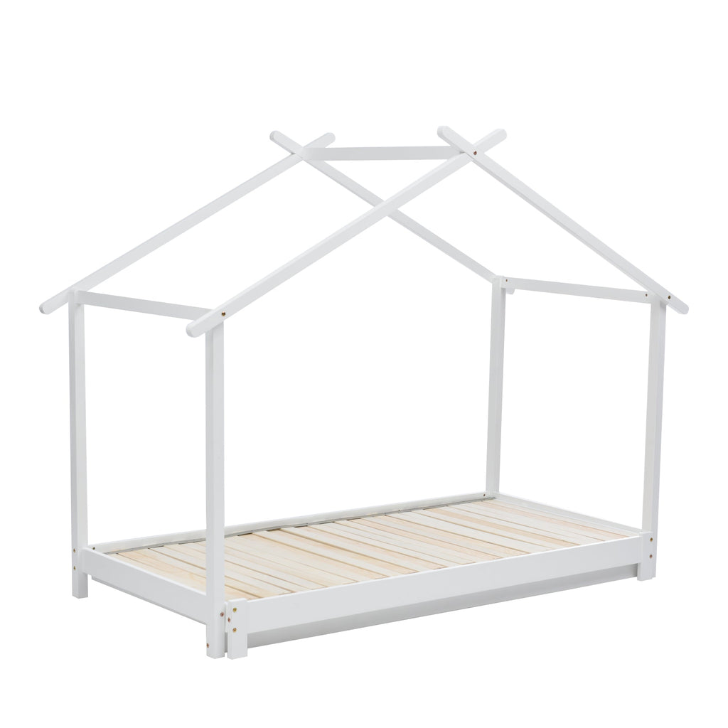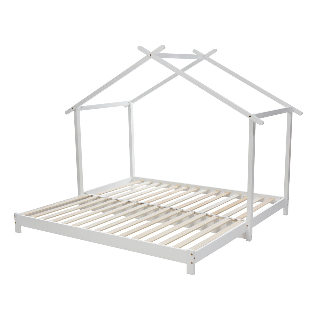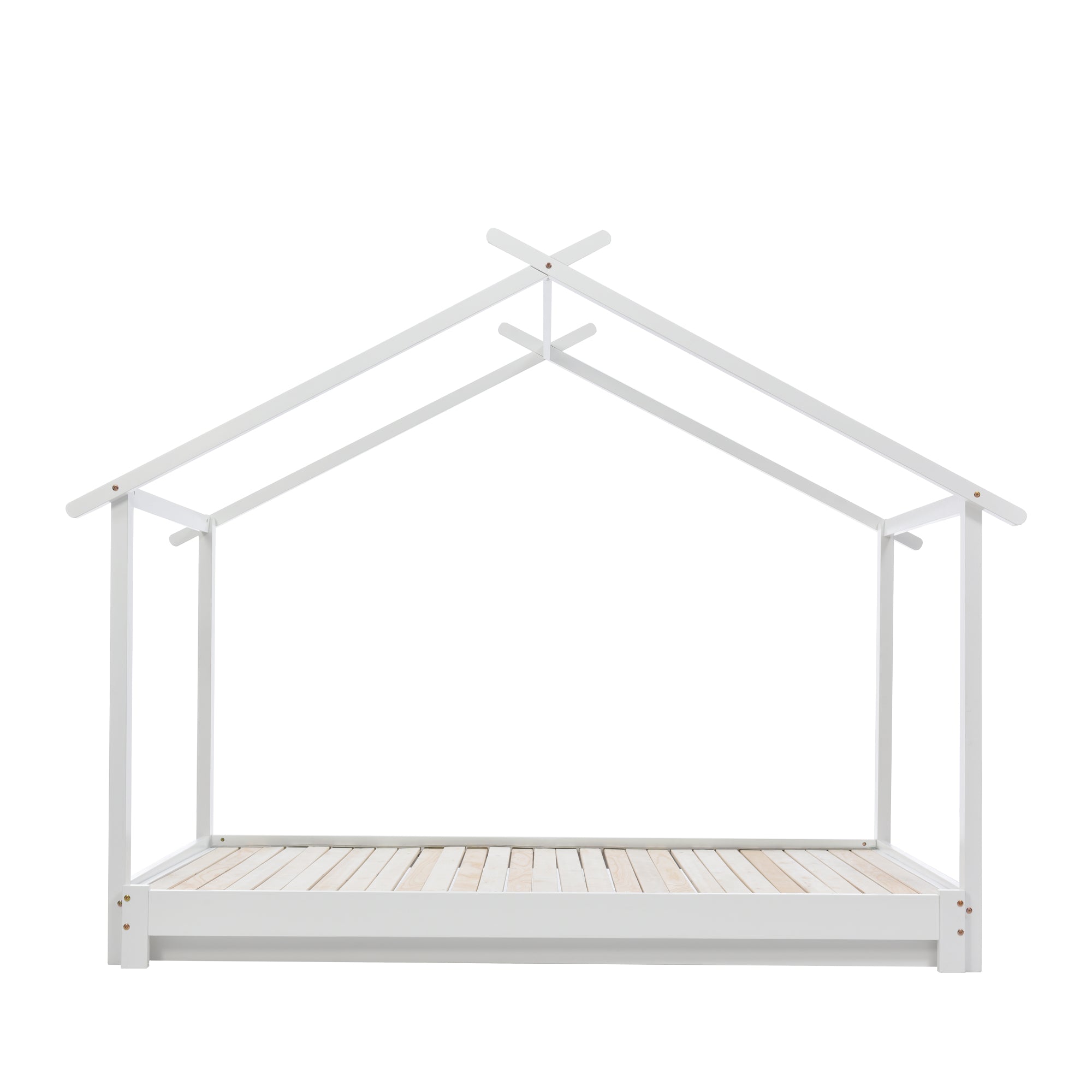 House Bed, 90/180x190cm Convertible Floor with Slatted Frame, Solid Wood White