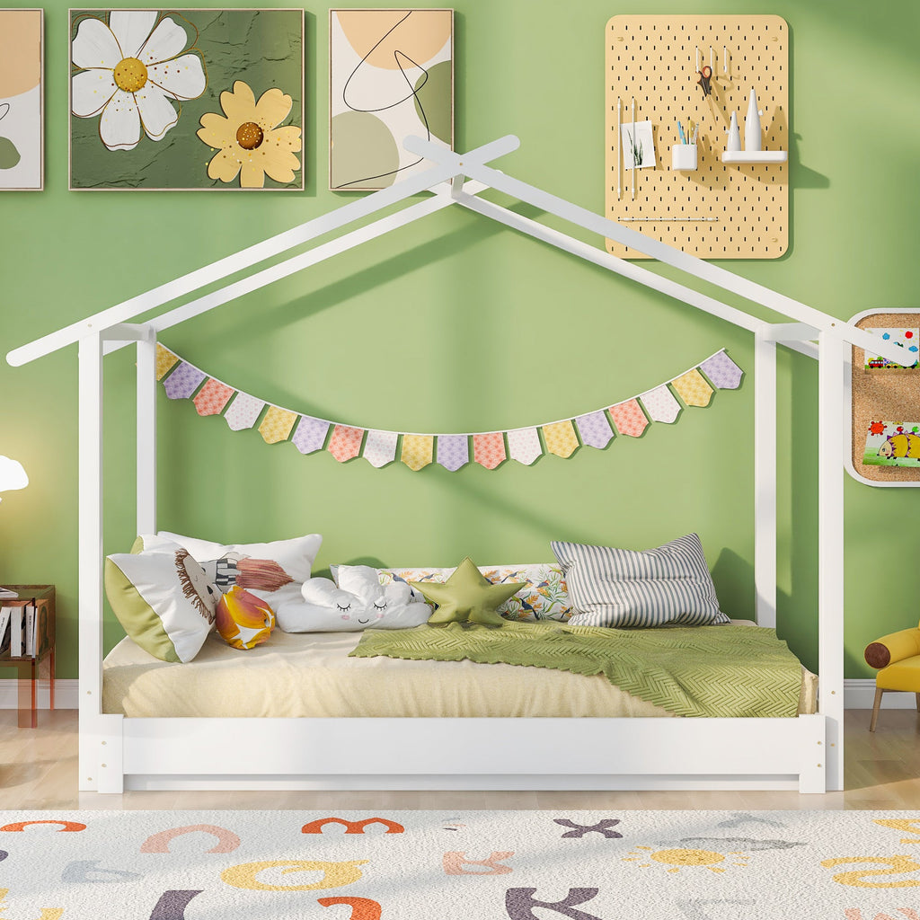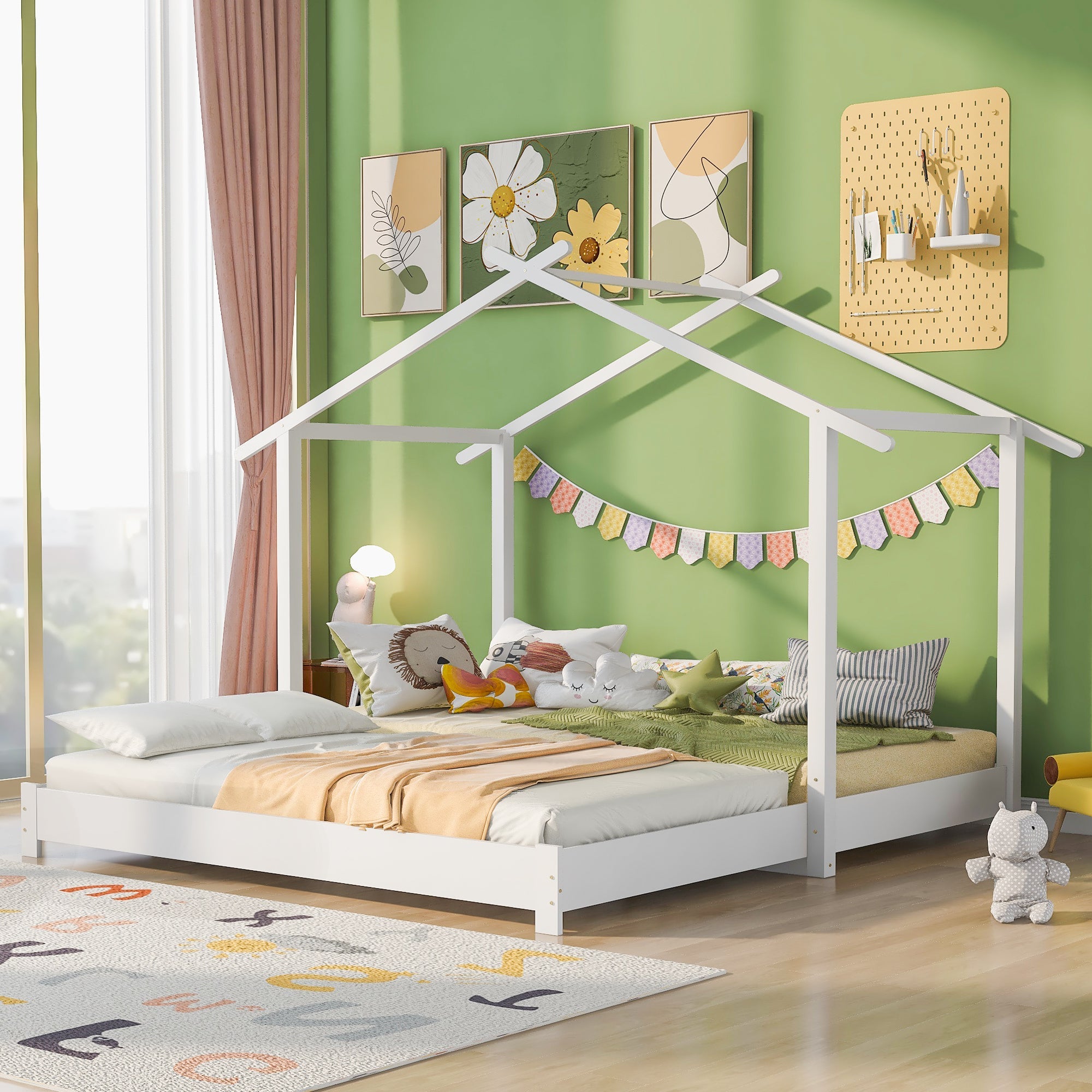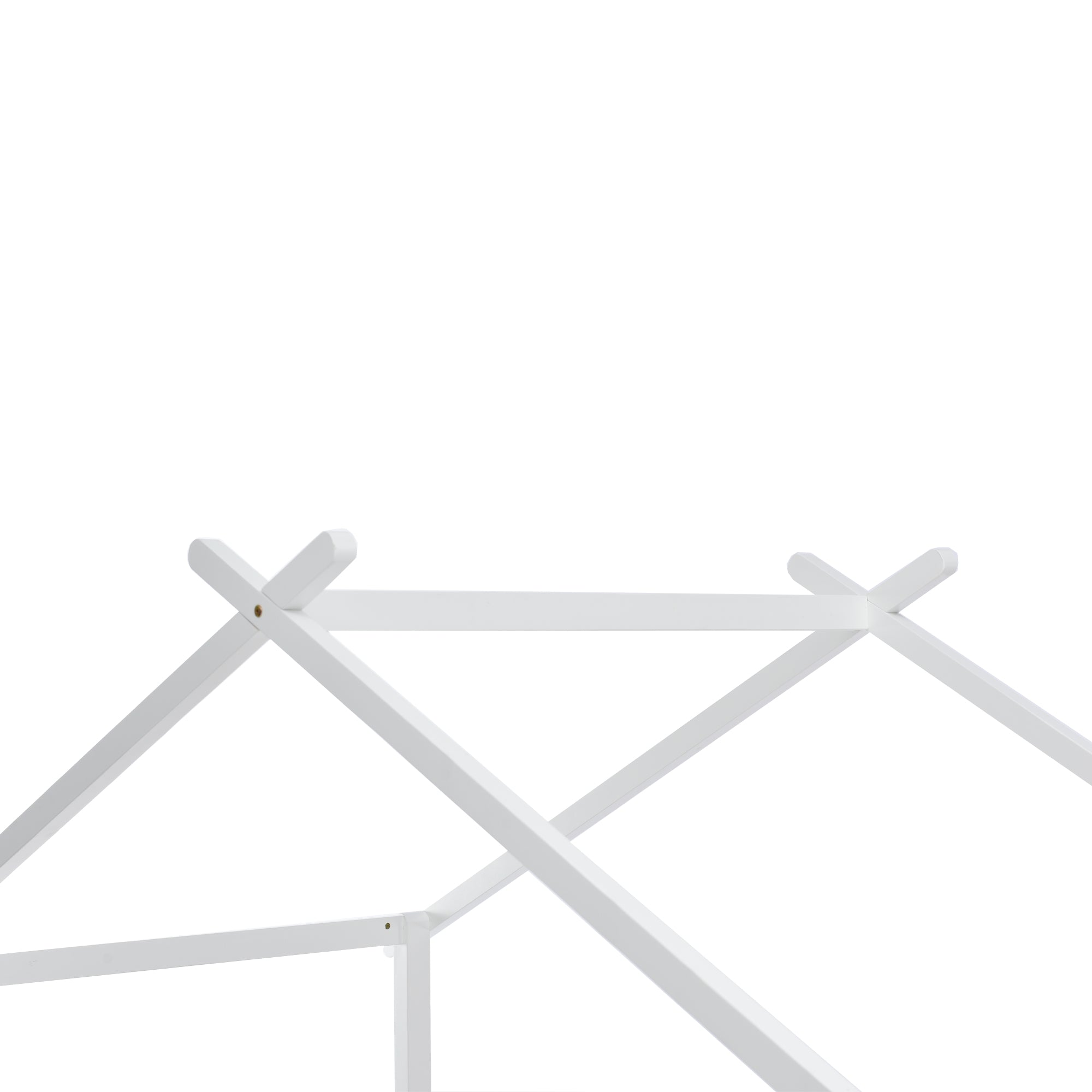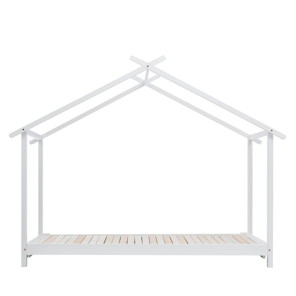 House Bed, 90/180x190cm Convertible Floor with Slatted Frame, Solid Wood White