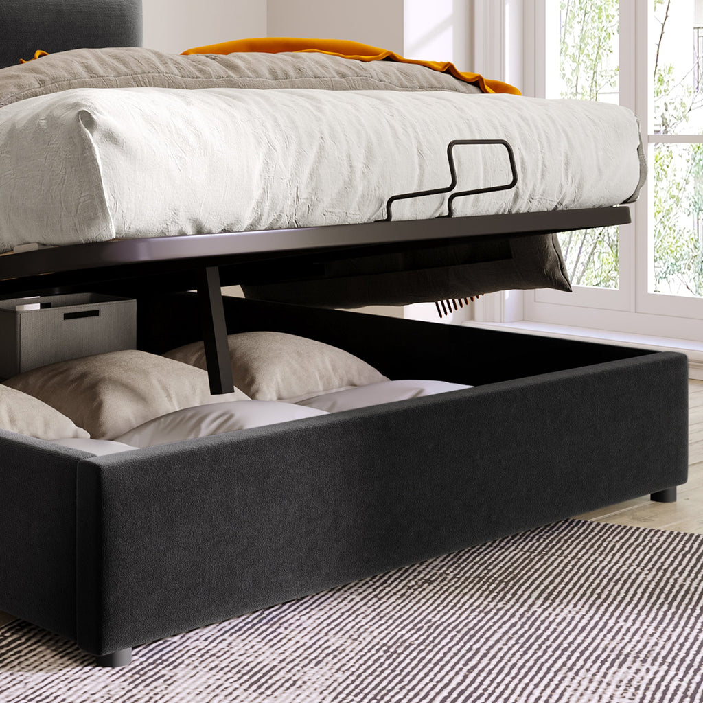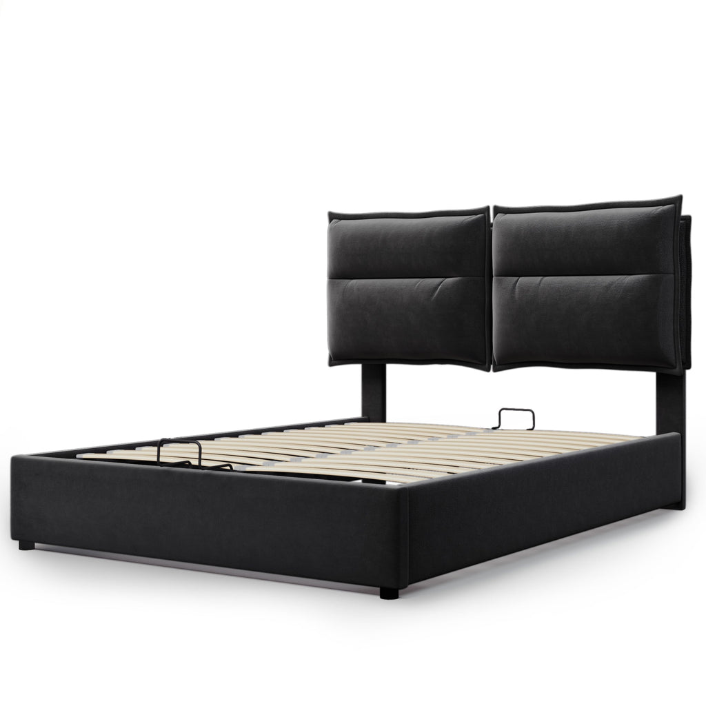 Hydraulic Double Upholstered Bed, 140x200cm Adjustable Headboard Metal Frame, Velvet Black