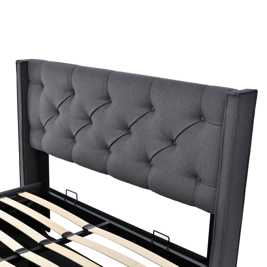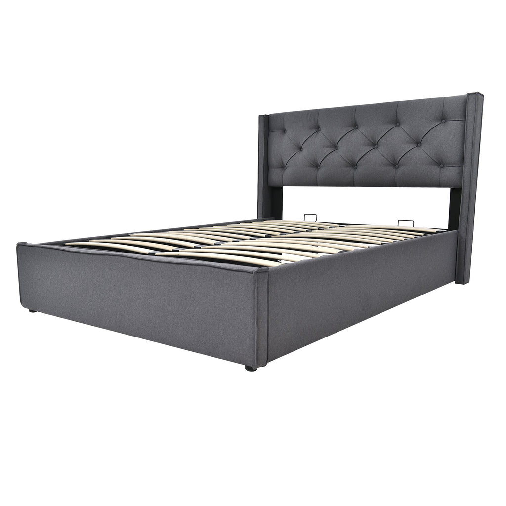 Hydraulic Double Upholstered Bed 160x200cm, Metal Frame with Storage, Gray Cotton