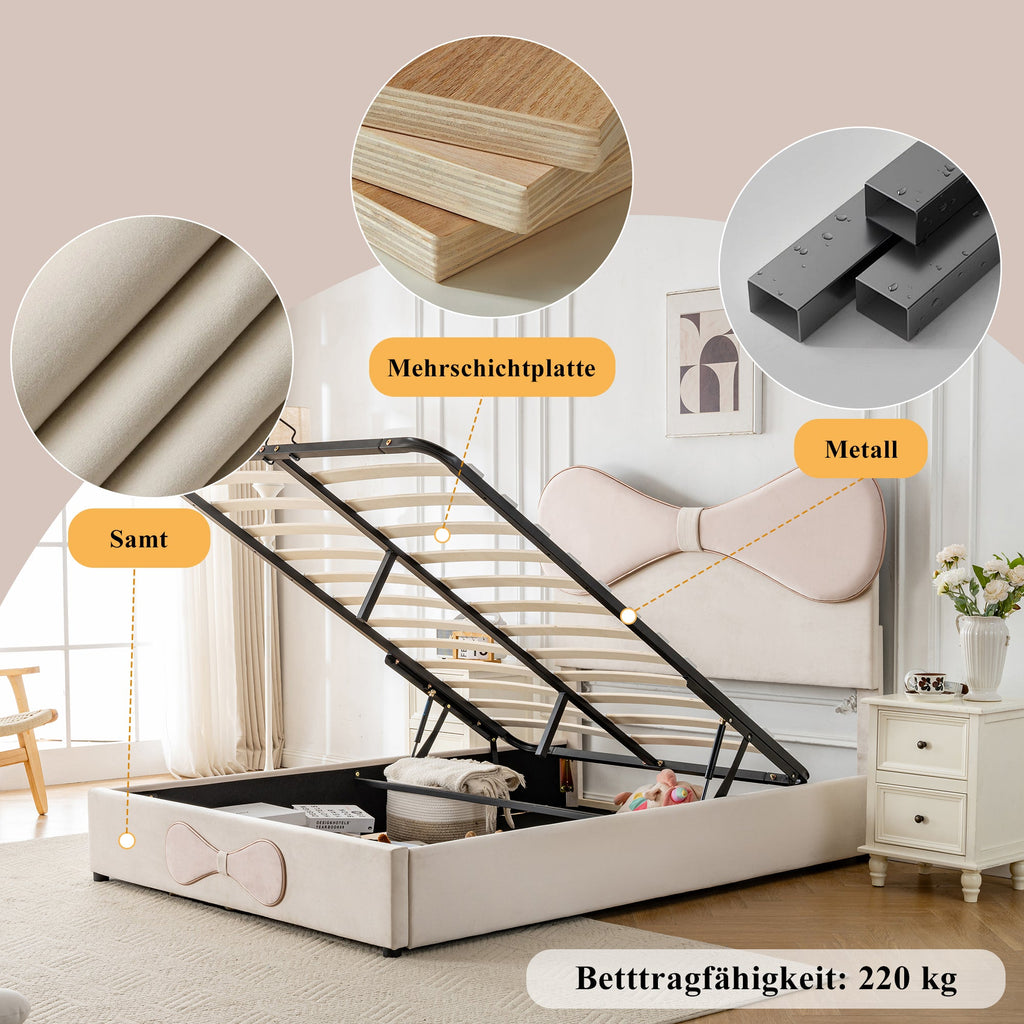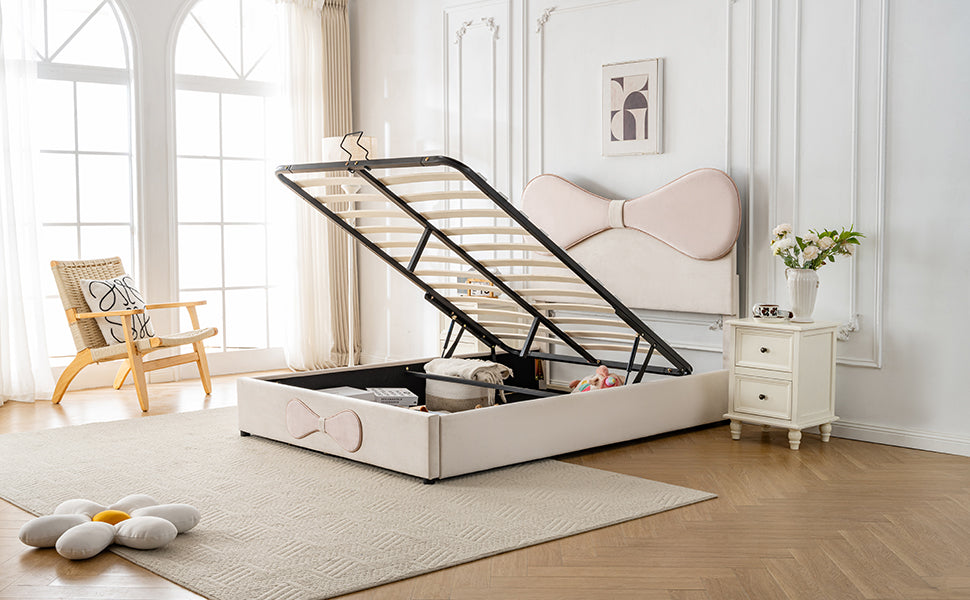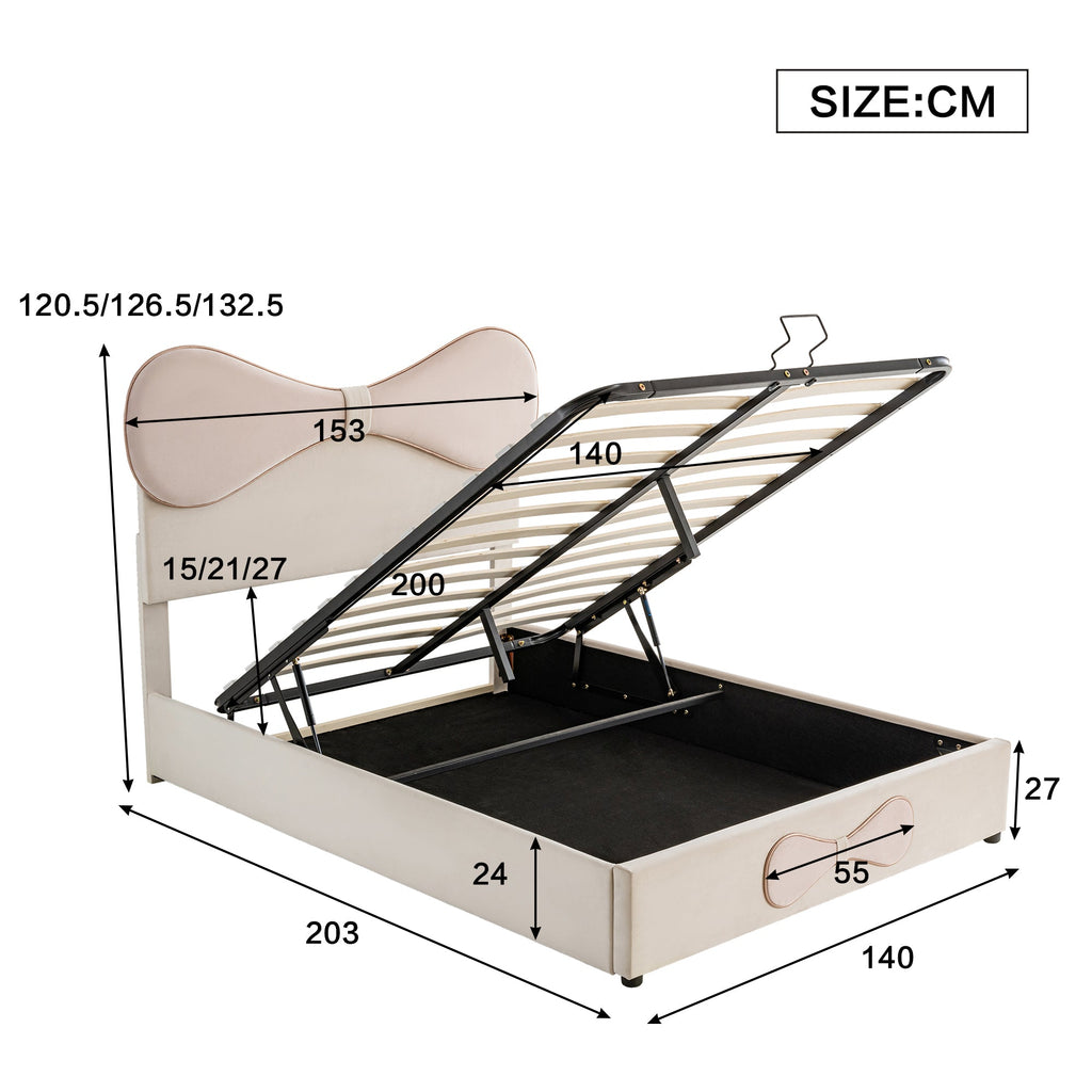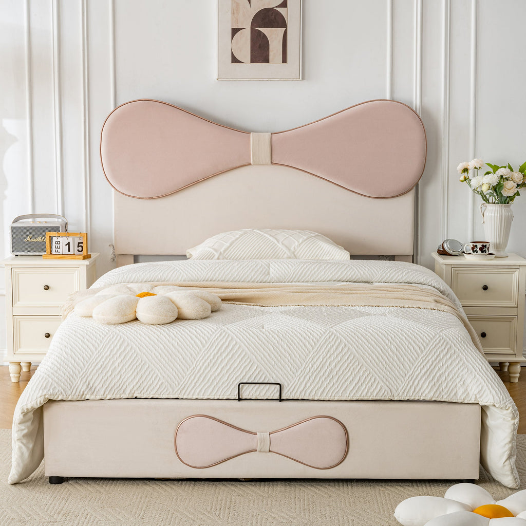 Hydraulic Upholstered Bed, Double Bed, Adjustable Headboard, Bow Tie Upholstered Headboard, Velvet